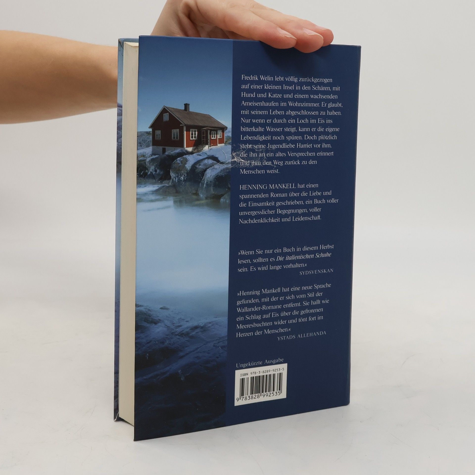 Ein Roman über große Gefühle vom schwedischen Meister der Melancholie Fredrik Welin ist etwas widerfahren, das er nur »die Katastrophe« nennt. Danach hat sich der Chirurg auf eine kleine Insel in den Schären zurückgezogen und meidet jeden Kontakt mit der Außenwelt. Doch eines Tages taucht seine Jugendliebe Harriet wie aus dem Nichts auf dem Eis vor seinem Haus auf. Sie erinnert ihn an ein altes Versprechen, und er folgt ihr auf eine Reise in die Vergangenheit, voller unverhoffter und außergewöhnlicher Begegnungen. Eine Reise, die ihm den Weg zurück ins Leben und zu den Menschen weisen wird.