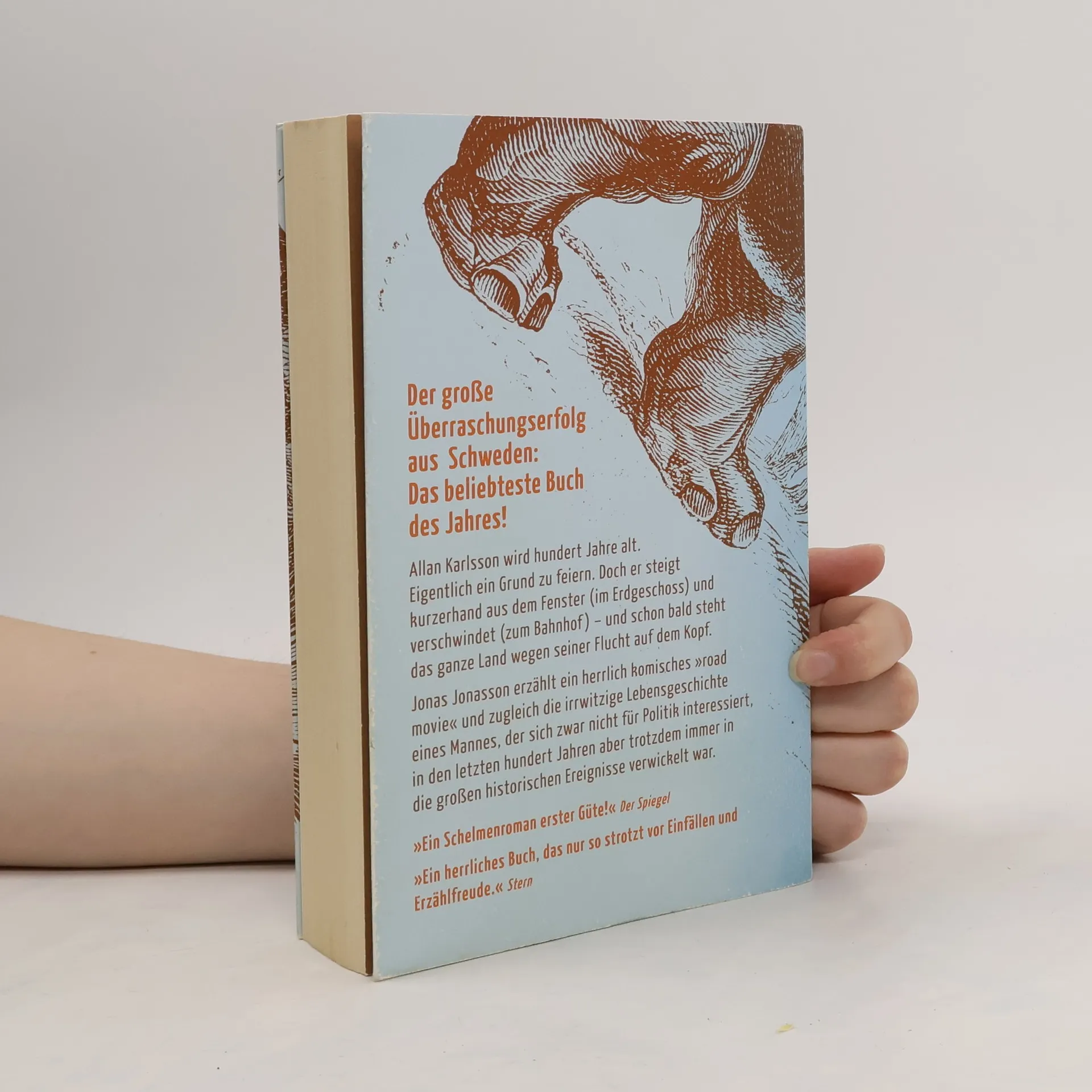 Allan Karlsson hat Geburtstag. Er wird 100 Jahre alt. Eigentlich ein Grund zu feiern. Doch während sich der Bürgermeister und die lokale Presse auf das große Spektakel vorbereiten, hat der Hundertjährige ganz andere Pläne: er verschwindet einfach – und schon bald steht ganz Schweden wegen seiner Flucht auf dem Kopf. Doch mit solchen Dingen hat Allan seine Erfahrung, er hat schließlich in jungen Jahren die ganze Welt durcheinander gebracht.Jonas Jonasson erzählt in seinem Bestseller von einer urkomischen Flucht und zugleich die irrwitzige Lebensgeschichte eines eigensinnigen Mannes, der sich zwar nicht für Politik interessiert, aber trotzdem irgendwie immer in die großen historischen Ereignisse des 20. Jahrhunderts verwickelt war.