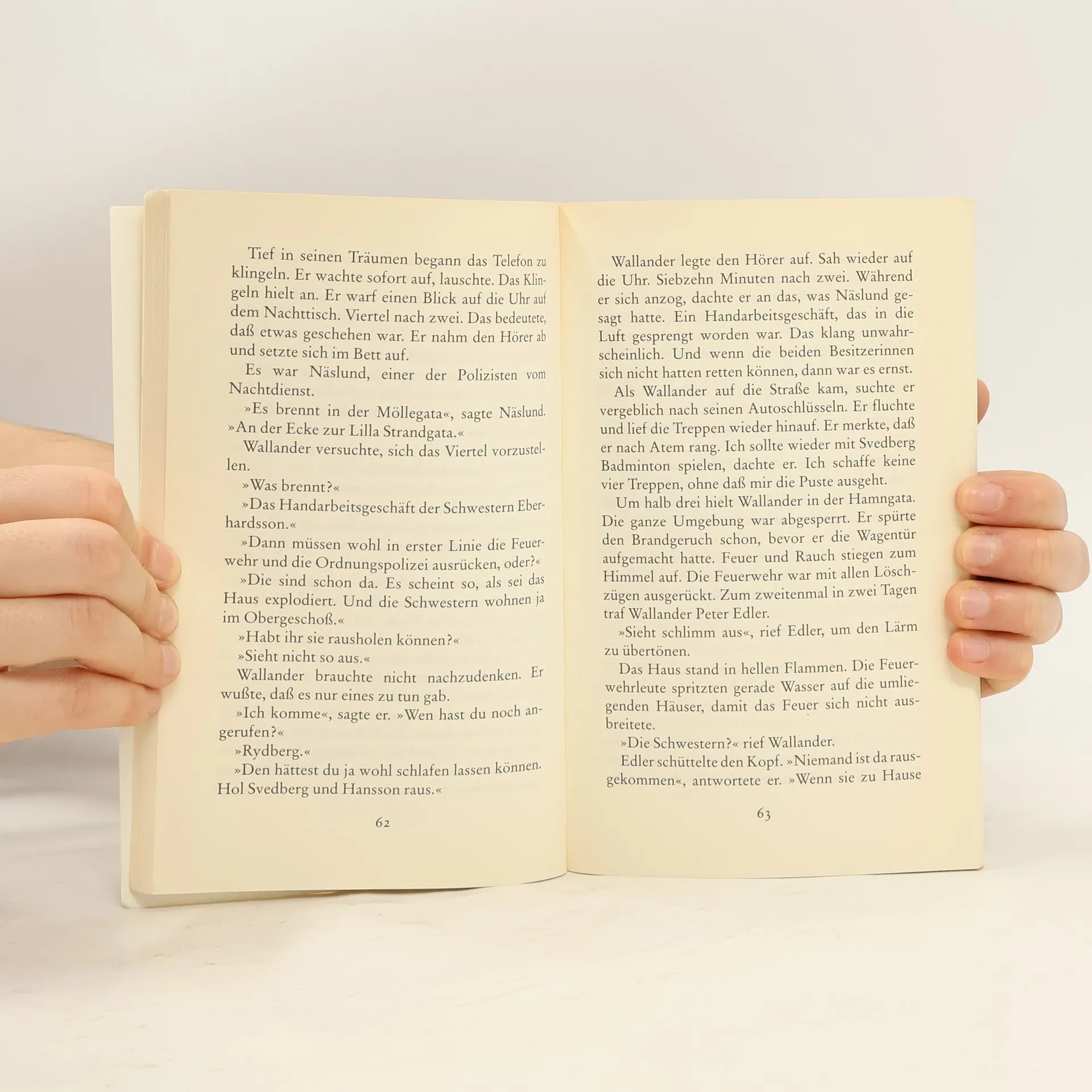 Vier verbrannte Leichen in Ystad. Mord? Wallander ermittelt ... Der Roman aus ›Wallanders erster Fall‹ – in großer Schrift. In der Nähe von Ystad stürzt ein Sportflugzeug ab, aus dem brennenden Wrack werden zwei verkohlte Körper geborgen. Achtundvierzig Stunden später wird ein Handarbeitsgeschäft in die Luft gesprengt, und zwei alte Damen liegen fast bis zur Unkenntlichkeit verbrannt in den Trümmern. Mord? Die beiden Schwestern weisen Einschußstellen am Kopf auf. Ein Fall für Kurt Wallander. Doch noch bevor er die Ermittlungen richtig aufnehmen kann, muß er seinen eigenen Vater aus dem Gefängnis holen, weil der versucht hat, in Ägypten auf eine Pyramide zu steigen. Es bleibt Wallander nichts anderes übrig, als selbst nach Kairo zu reisen, nicht ahnend, daß ihn die Rettung des Vaters auf eine entscheidende Spur im aktuellen Fall führen wird …