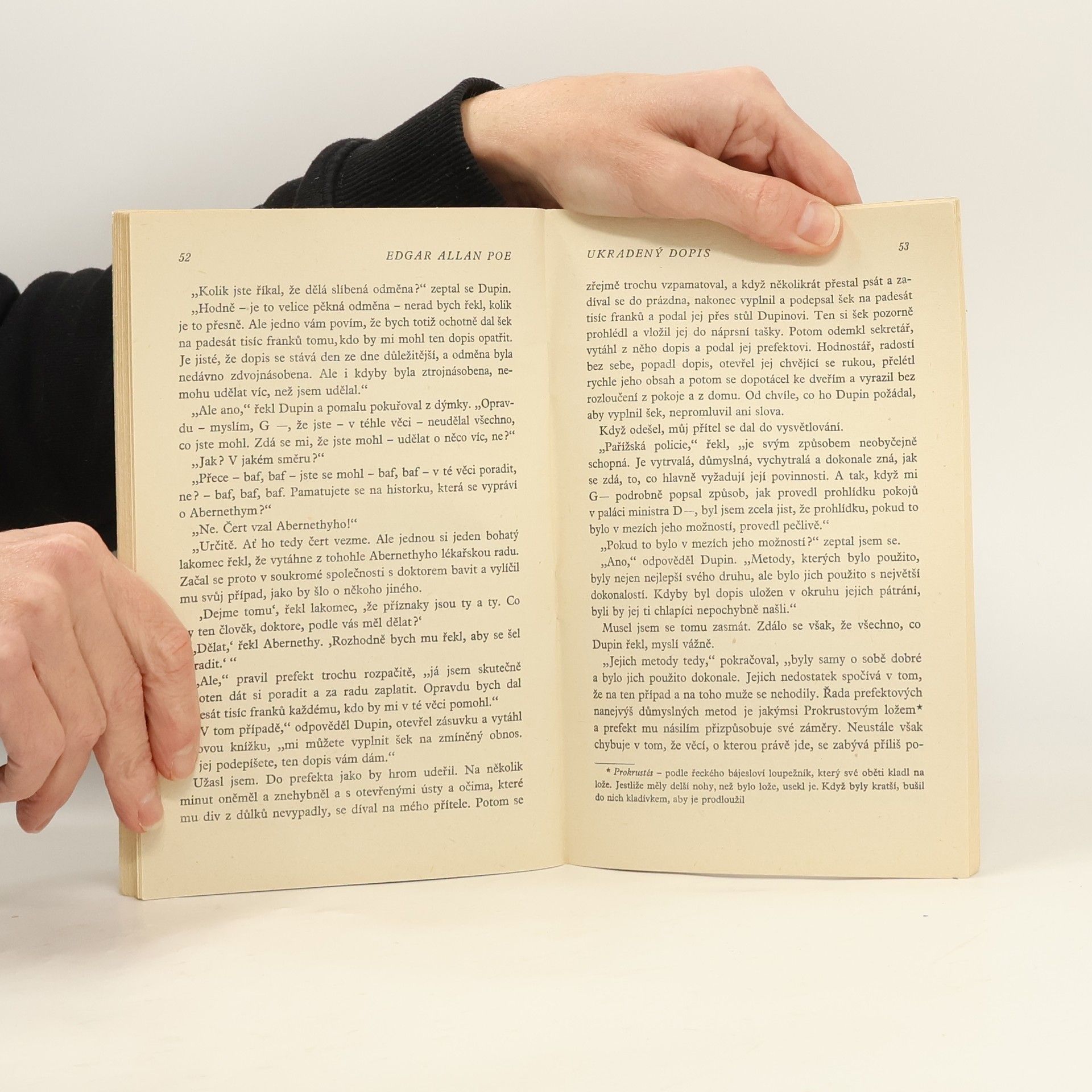 Tři povídky (Zlatý skarabeus, Ukradený dopis, Sestup do Maelströmu) známého amerického spisovatele. V prvé se vypráví o dobrodružném objevu pokladu nesmírné ceny rozluštěním a dešifrováním záhadného nálezu na pobřeží moře, druhá je založena na spekulaci, že nejlepším úkrytem pro ukrývanou písemnost je místo nejnápadnější, v třetí se popisuje záchrana trosečníka z mořského víru na základě úvahy shodné s Archimedovým zákonem. Výbor uspořádal Jiří Šeda.