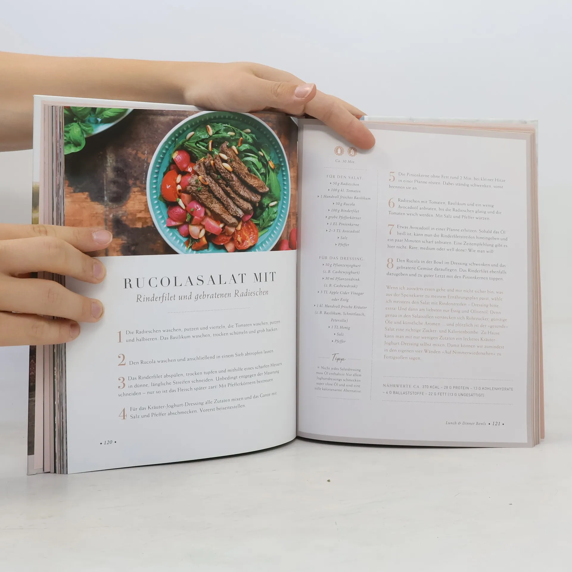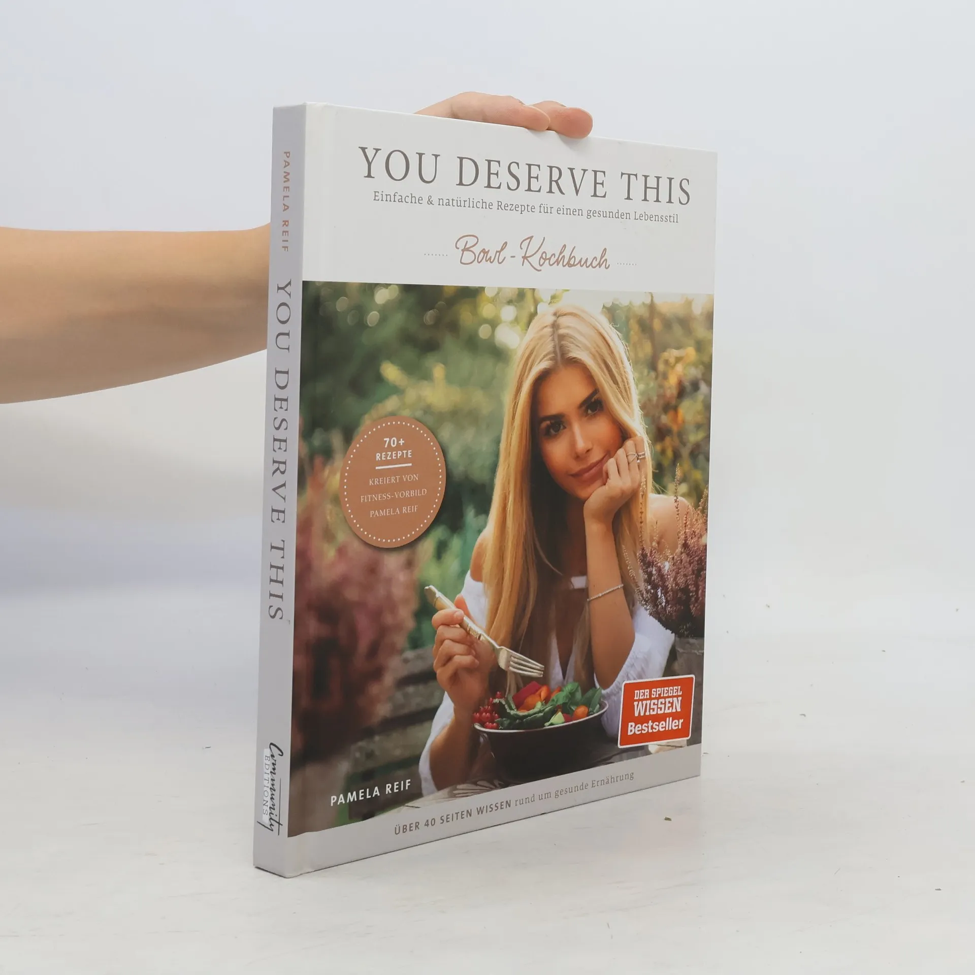 Über 70 gesunde, ausgewogene und leckere Bowl-Rezepte von Fitness-Vorbild Pamela Reif! Gesunde und natürliche Ernährung ist das, was Körper und Seele täglich verdienen und hat nichts mit Verzicht zu tun. Sich langfristig großartig zu fühlen und der Gesundheit etwas Gutes zu tun, ist auch im Alltag möglich - mit Bowls! Einfache, natürliche und vollwertige Gerichte werden ohne stundenlange Küchenarbeit in schönen Schalen angerichtet. Pamela Reif hat ihre liebsten Rezepte fotografiert und niedergeschrieben. Ergänzt wird das Kochbuch durch eine grundlegende Lebensmittelkunde, die die Vorteile dieser ausgewogenen Ernährung leicht verständlich erläutert. Die ultimative Ernährungsformel ist nicht zwangsläufig „low carb“ oder „low fat“ - entscheidend ist, dass die Nahrung „echt“ und natürlich ist. Das Herzstück sind über 80 abwechslungsreiche Bowl-Rezepte für jede Tages- und Mahlzeit: Breakfast-Bowls, Smoothie-Bowls, Lunch- & Dinner-Bowls, Sweet Bowls und Sides. Ob süße Apfelkuchen-Smoothie-Bowl, herzhafte Spinat-Kichererbsen-Pfannkuchen, bunte Buddha-Bowl oder Brownie-Bowl: Hier kann ohne schlechtes Gewissen geschlemmt werden. Mit Symbolen sind die Rezepte einfach in vegetarisch, vegan, mit Fleisch, glutenfrei oder laktosefrei einzuordnen. Ausbalancierte Rezepte und wertvolles Ernährungswissen bilden die ideale Grundlage, um den eigenen Lebensstil unkompliziert und genussvoll zu verändern - für ein ausgeglichenes Leben. Because you