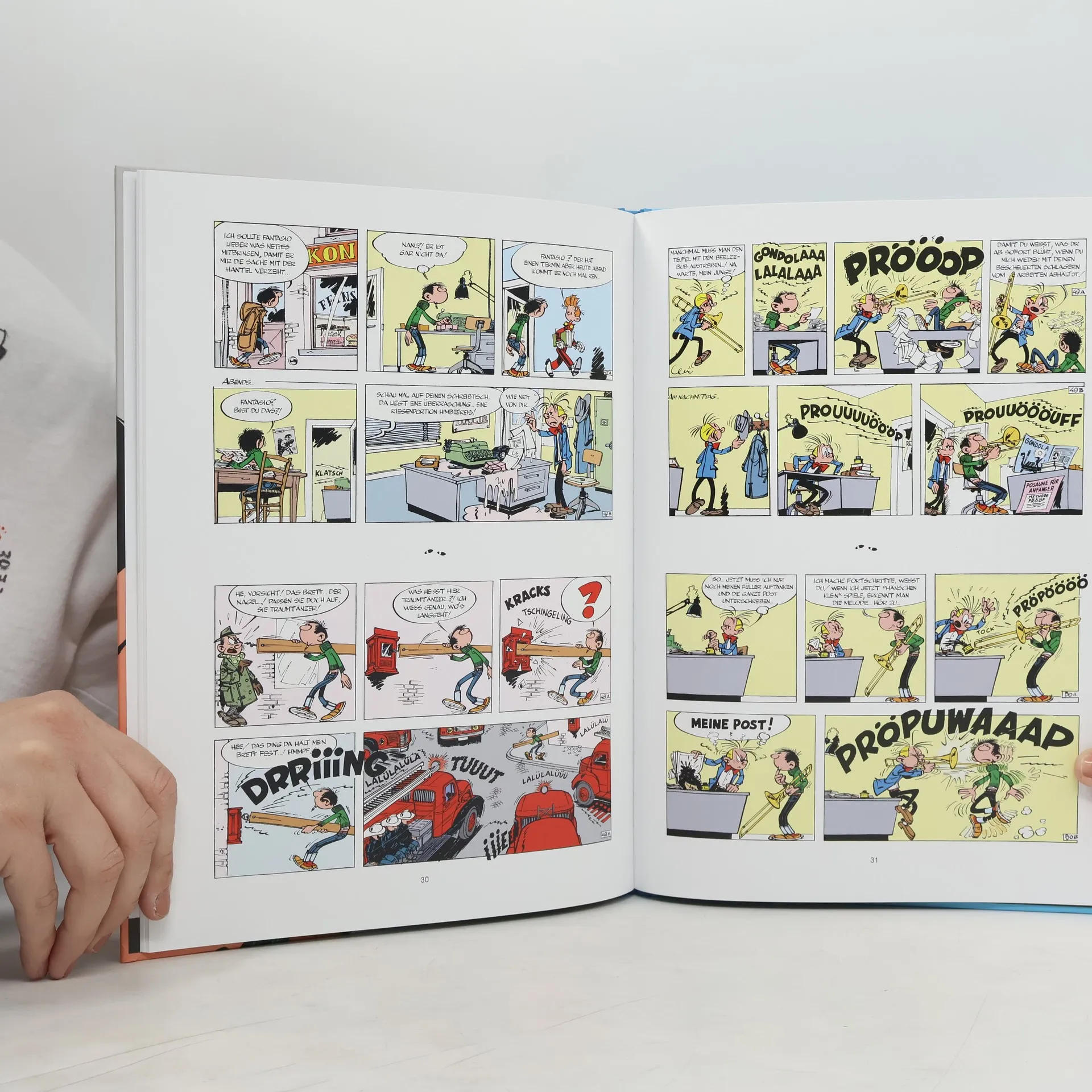 Chaotisch bis in die Haarspitzen: Gaston Lagaffe bringt mit seinen verrückten Ideen das gesamte Team eines Comic-Verlages an den Rand des Nervenzusammenbruchs. Ob Esskastanien im Büro rösten oder Aktenschränke automatisieren – für Gaston ist nichts unmöglich! Sein Kollege Fantasio hat alle Hände voll zu tun, um die Verlagsbüros vor Gastons chaotischen Einfällen zu schützen. Der berühmteste Bürobote der Comic-Geschichte, geschaffen von André Franquin, begeistert Comic-Fans mit seinem unkonventionellen Ansatz und seinem Hang zu Tagträumen und erfinderischen Hobbys. Diese hochwertige Neuausgabe präsentiert die Comics in chronologischer Reihenfolge, mit liebevoll überarbeiteter Farbgebung und Übersetzung, die Gastons Abenteuer in neuem Glanz erstrahlen lassen. Als gebundene Gesamtausgabe mit neuer Kolorierung und Lettering bietet die Kult-Serie zeitlosen Lesespaß. Gastons gut gemeinte, aber oft fehlgeleitete Bemühungen sorgen für Slapstick vom Feinsten und machen das Werk zum perfekten Geschenk für Comic-Fans und Arbeitskollegen, die eine originelle und unterhaltsame Lektüre schätzen. Die Gaston Neuedition ist ein Muss für alle, die dem drögen Büroalltag entfliehen wollen.