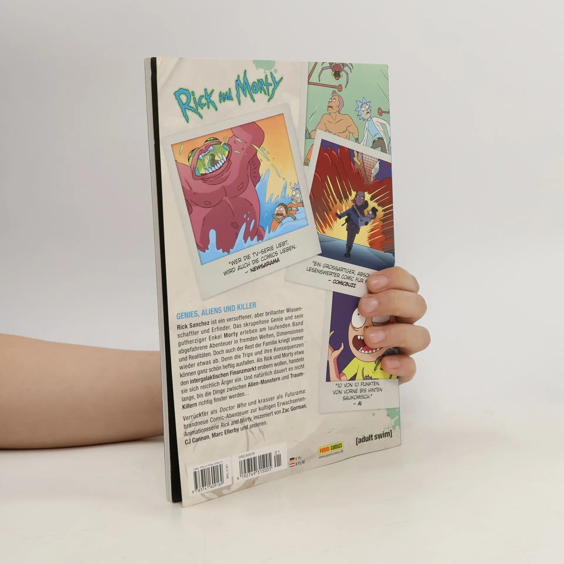 GENIES, ALIENS UND KILLER Rick Sanchez ist ein versoffener, aber brillanter Wissenschaftler und Erfinder. Das skrupellose Genie und sein gutherziger Enkel Morty erleben am laufenden Band abgefahrene Abenteuer in fremden Welten, Dimensionen und Realitäten. Doch auch der Rest der Familie kriegt immer wieder etwas ab. Denn die Trips und ihre Konsequenzen können heftig ausfallen. Als Rick und Morty etwa den intergalaktischen Finanzmark erobern wollen, handeln sie sich reichlich Ärger ein. Und natürlich dauert es nicht lange, bis die Dinge zwischen Alien-Monstern und Traum-Killern richtig finster werden... Verrückter als Doctor Who und krasser als Futurama: brandneue Comic-Abenteuer zur kultigen Erwachsenen-Animationsserie Rick and Morty, inszeniert von Zac Gorman, CJ Cannon, Marc Ellerby und anderen.
