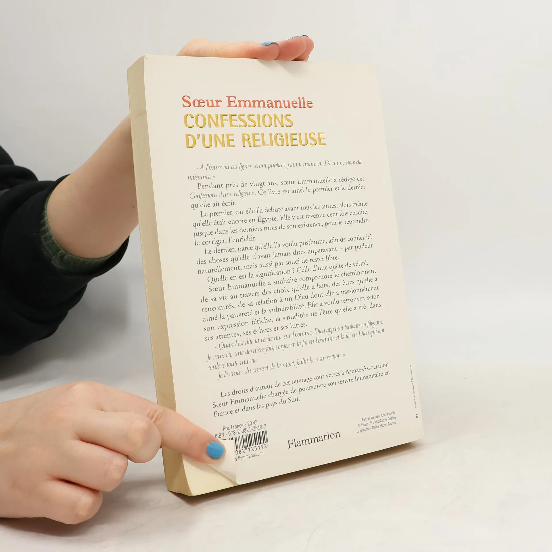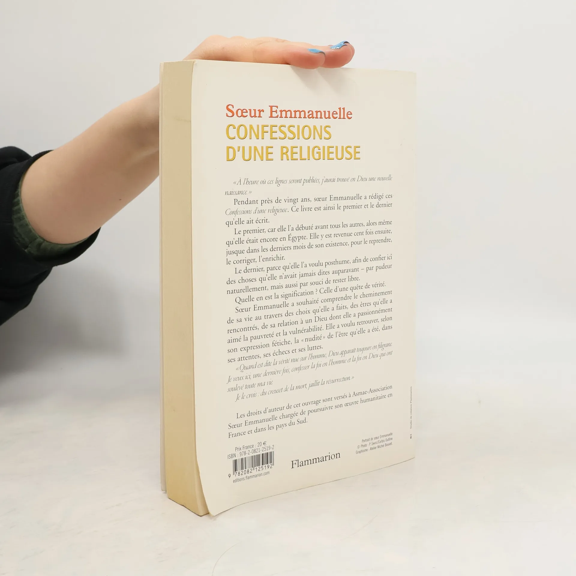 Pendant près de 20 ans, Sœur Emmanuelle a rédigé ses mémoires, elle y est revenue incessamment jusque dans les derniers mois de son existence, pour les reprendre, les corriger et les enrichir. Ses Confessions d'une religieuse sont donc le livre le plus important qu'elle ait écrit : Le premier, car elle l'a débuté avant tous les autres, alors même qu'elle était encore en Egypte ; et aussi le dernier parce qu'elle l'a voulu posthume, afin de dire des choses qu'elle n'avait jamais dites auparavant, par pudeur naturellement, mais aussi par souci de rester libre. Ce livre est avant tout une quête de vérité. Sœur Emmanuelle y évoque le long cheminement de sa vie au travers des choix qu'elle a faits, des êtres qu'elle a rencontrés, de sa relation intime avec Dieu. Elle a voulu retrouver, selon son expression fétiche, la « nudité » de l'être qu'elle a été, dans ses attentes, ses échecs et ses luttes.