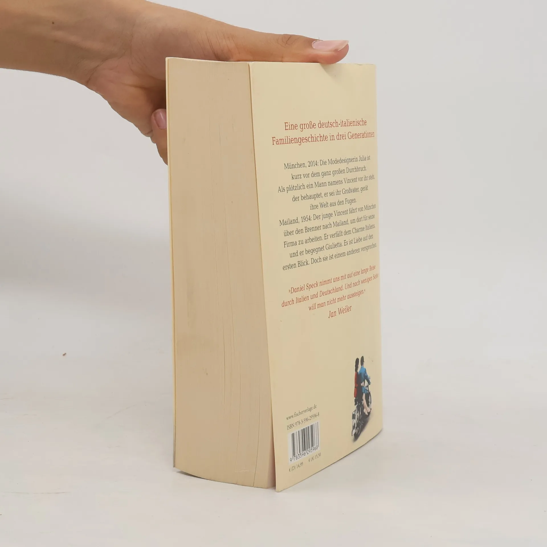 »Eine packende Geschichte – und wunderschön erzählt.« Jan Weiler Daniel Specks Roman »Bella Germania« ist eine große deutsch-italienische Familiengeschichte in drei Generationen – voller Zeitkolorit, dramatischer Wendungen und großer Gefühle.»Er reichte mir ein altes Foto. Ein junges Paar vor dem Mailänder Dom. Die Frau hatte schwarze Haare und sah aus wie ich. Es war, als blickte ich direkt in einen Spiegel. ›Das ist Giulietta‹, sagte er, ›deine Großmutter.‹« München, 2014: Die Modedesignerin Julia ist kurz vor dem ganz großen Durchbruch. Als plötzlich ein Mann namens Vincent vor ihr steht, der behauptet, er sei ihr Großvater, gerät ihre Welt aus den Fugen. Mailand, 1954: Der junge Vincent fährt von München über den Brenner nach Mailand, um dort für seine Firma zu arbeiten. Er verfällt dem Charme Italiens, und er begegnet Giulietta. Es ist Liebe auf den ersten Blick. Doch sie ist einem anderen versprochen.Eine tragische Liebe nimmt ihren Lauf, die auch Jahrzehnte später noch das Leben von Julia völlig verändern wird. »Daniel Speck nimmt uns mit auf eine lange Reise durch Italien und Deutschland. Und nach wenigen Seiten will man nicht mehr aussteigen.« Jan Weiler