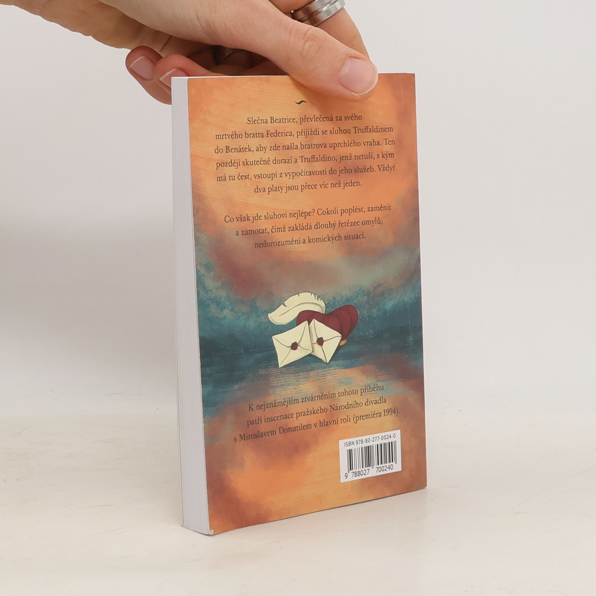 Divadelní hra Sluha dvou pánů je klasické italské dílo žánru commedia dell'arte z roku 1745. Slečna Beatrice, převlečená za svého mrtvého bratra Federica, přijíždí se sluhou Truffaldinem do Benátek, aby zde našla bratrova uprchlého vraha. Ten později skutečně dorazí a Truffaldino, jenž netuší, s kým má tu čest, vstoupí z vypočítavosti i do jeho služeb. Vždyť dva platy jsou přece víc než jeden. Sluha ovšem nejlépe ze všeho umí poplést, zaměnit a pomotat jakýkoli úkol, čímž zakládá dlouhý řetězec omylů, nedorozumění a komických situací. K nejznámějším ztvárněním tohoto příběhu patří inscenace pražského Národního divadla s Miroslavem Donutilem v hlavní roli. (Premiéra 1994.) Toto provedení bylo i zaznamenáno pro televizní vysílání.