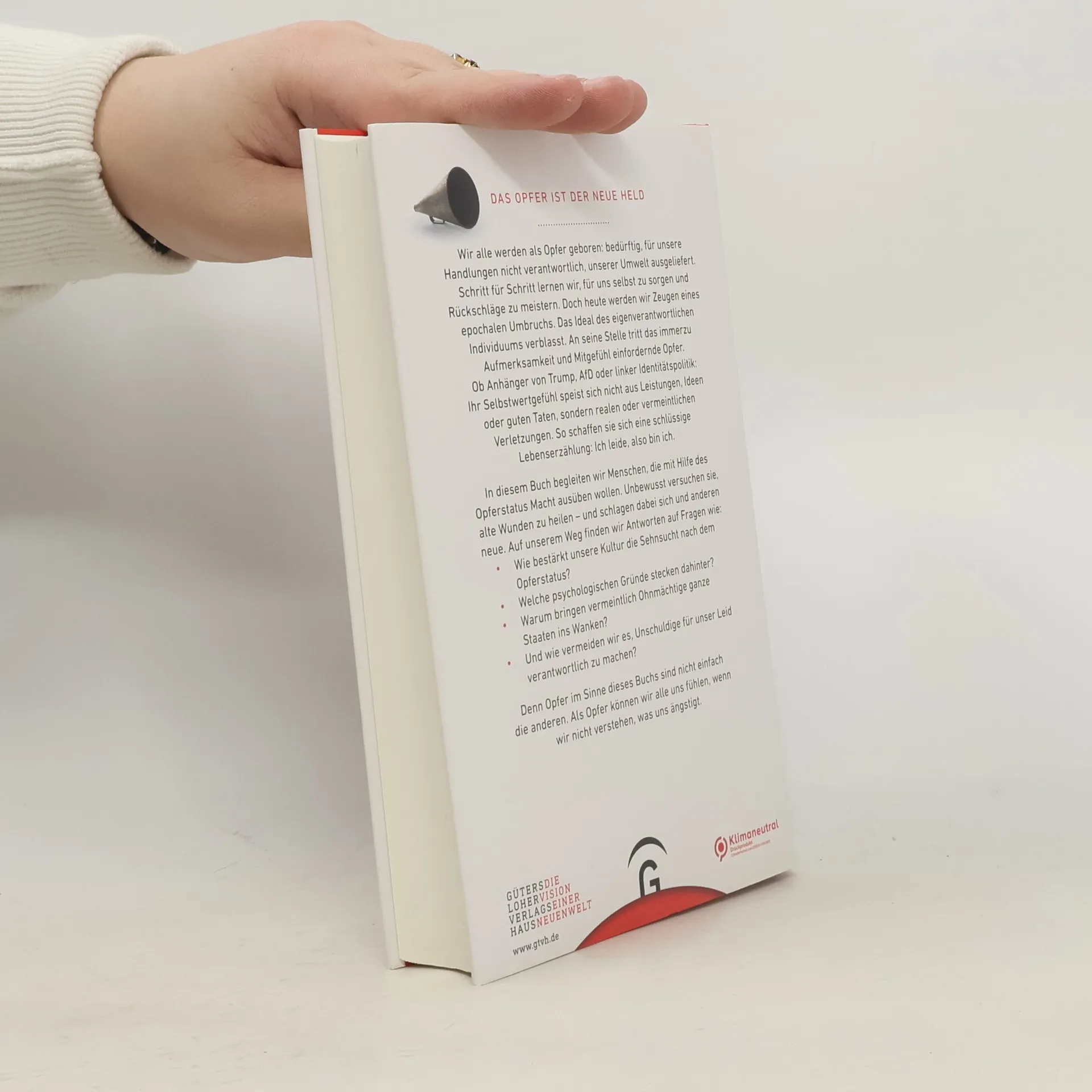 Donald Trump, die AfD und radikale Verfechter der Identitätspolitik haben etwas Wichtiges gemeinsam: Sie sehen sich als Opfer finsterer Mächte. Die neuen Opfer unterteilen die Welt in Gut und Böse. Dialog ersetzen sie durch Empörung, Fakten durch Bauchgefühle. Sie geben sich als Richter über unsere moralischen Normen, brechen diese aber ständig selbst. Ihren wachsenden Einfluss nutzen sie allein für sich, während wirklich Machtlose leer ausgehen. Nie zuvor beklagten Menschen wegen geringerer Anlässe, ihnen widerfahre gewaltiges Unrecht - und nie zuvor hatten sie damit mehr Erfolg. Dabei liegen die wahren Ursachen, weshalb wir uns ohnmächtig, benachteiligt oder bedroht fühlen, meist nicht im Hier und Jetzt, sondern in unserer Kindheit. Bestsellerautor Matthias Lohre bietet verblüffende Einsichten in ein Phänomen, das unser Leben immer stärker prägt, und zeigt Auswege aus dem Opfer-Denken.