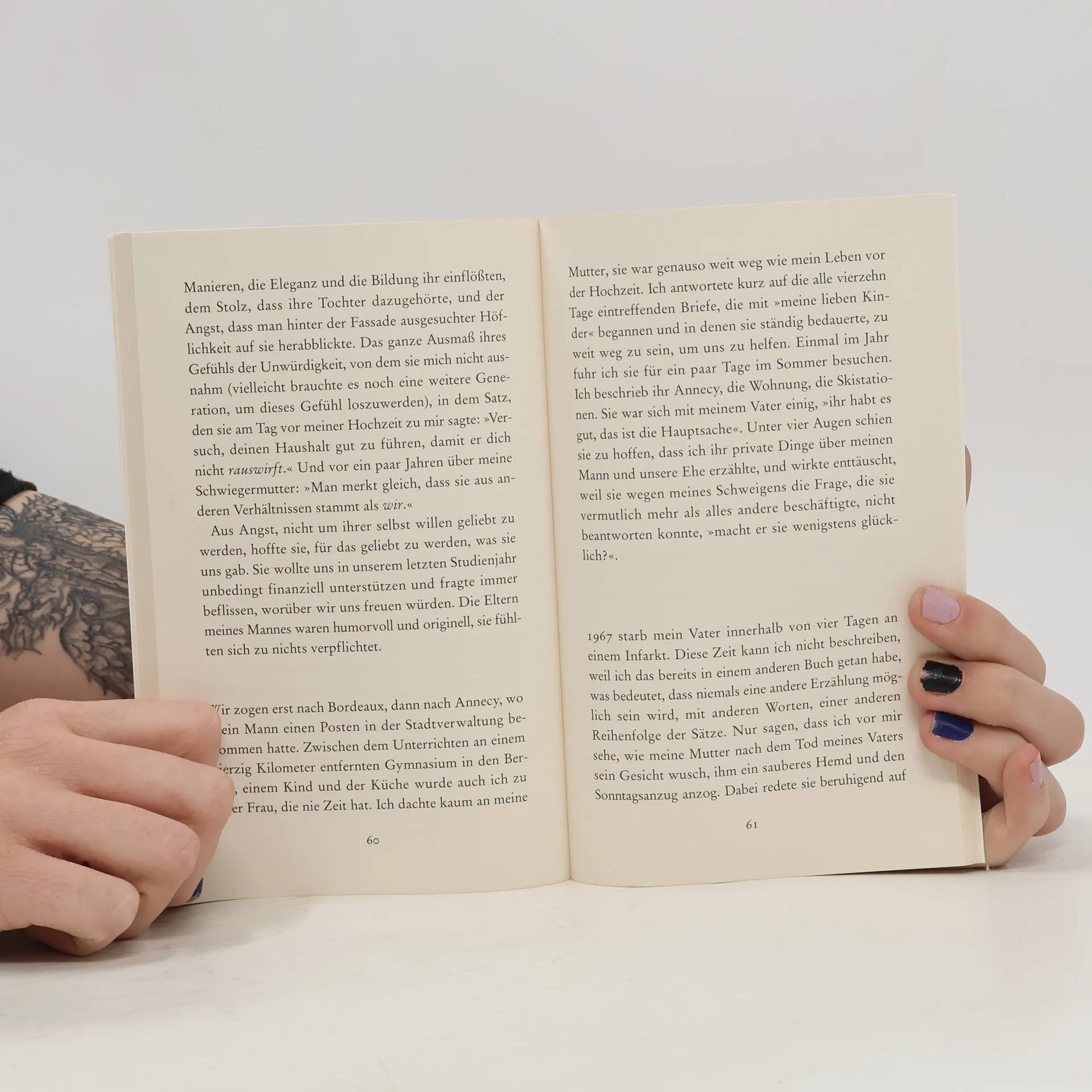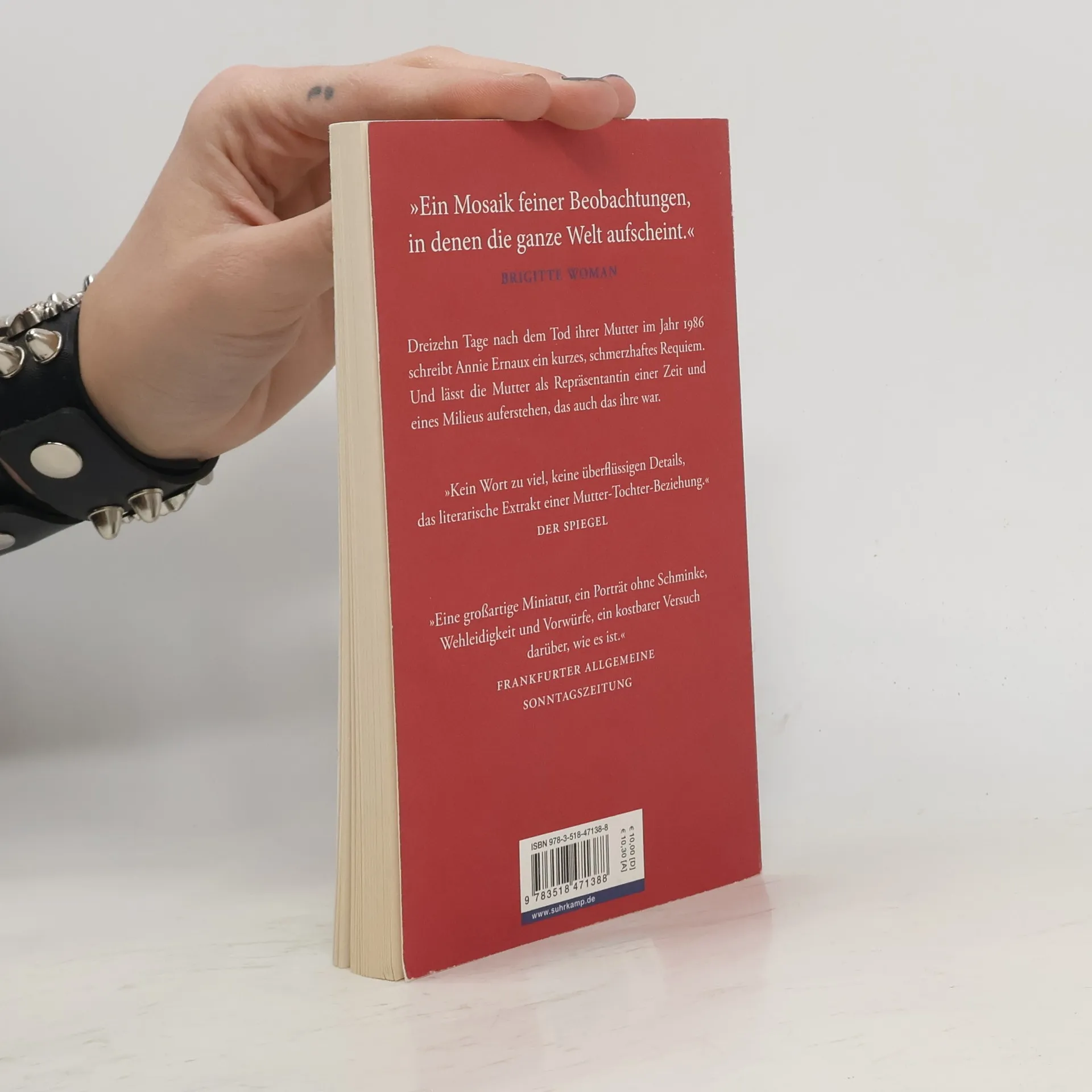 Nobelpreis für Literatur 2022 Dreizehn Tage nach dem Tod ihrer Mutter im Jahr 1986 schreibt Annie Ernaux ein kurzes, schmerzhaftes Requiem. Und lässt die Mutter als Repräsentantin einer Zeit und eines Milieus auferstehen, das auch das ihre war. Das Leben ihrer Mutter: geboren um die Jahrhundertwende in der Normandie, Arbeiterin, dann Ladenbesitzerin, Ehefrau, zweifache Mutter, lebenslustig und offen, Körper und Geist werden später langsam durch Alzheimer zerstört. Das Ende war für die Tochter vorauszusehen, die Wirklichkeit des Todes scheint indessen kaum erträglich. Zeit ihres Lebens kämpfte die Mutter darum, ihren sozialen Status zu erhalten, ihn vielleicht sogar zu überwinden. Erst der Tochter wird dies gelingen, eine Distanz zwischen den beiden entsteht. Auch darauf blickt Annie Ernaux zurück, voller Zärtlichkeit und Abscheu und Schuldgefühl.