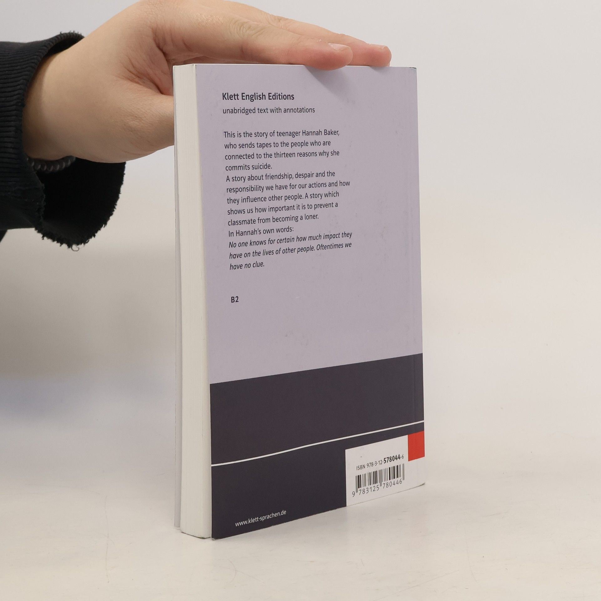 This is the story of teenager Hannah Baker, who sends tapes to the people who are connected to the thirteen reasons why she commits suicide. A story about friendship, despair and the responsibility we have for our actions and how they influence other people. A story which shows us how important it is to prevent a classmate from becoming a loner. In Hannah's own words: "No one knows for certain how much impact they have on the lives of other people. Oftentimes we have no clue."