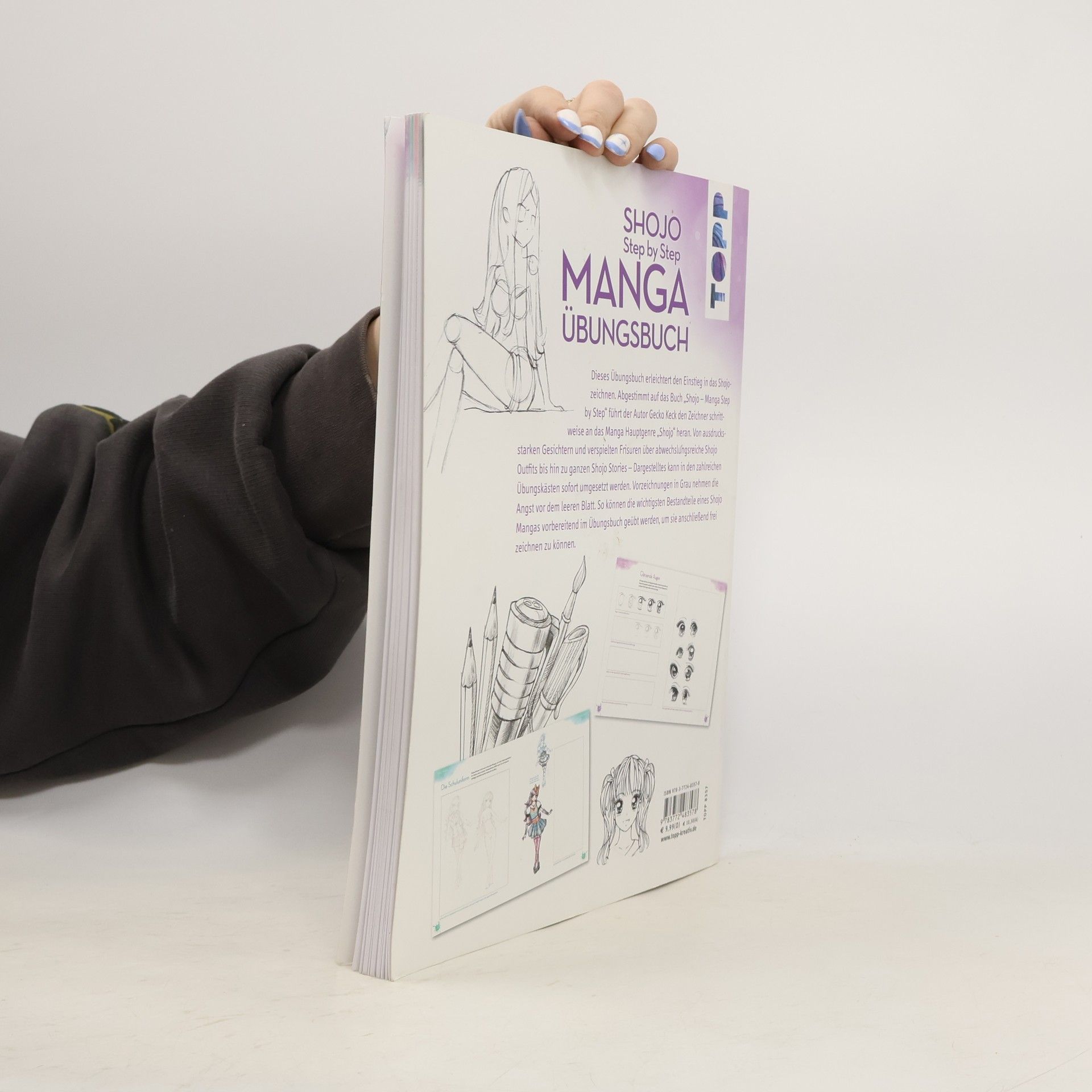 Der Autor Gecko Keck nimmt den Manga-Zeichner an die Hand und hilft, sich das Zeichnen von Augen, Händen, Emotionen, Figuren und Bewegung bei Shojos Schritt für Schritt anzueignen. Der Übungskurs ist auf das Buch Shojo. Manga - Step by Step abgestimmt. Zahlreiche Übungskästen regen zum Nachzeichnen an und erste Vorzeichnungen in Grau nehmen die Angst vor dem ersten Strich. So können die wichtigsten Bestandteile einer Shojo im Übungsbuch vorbereitend geübt werden, um sie anschließend frei zeichnen zu können.