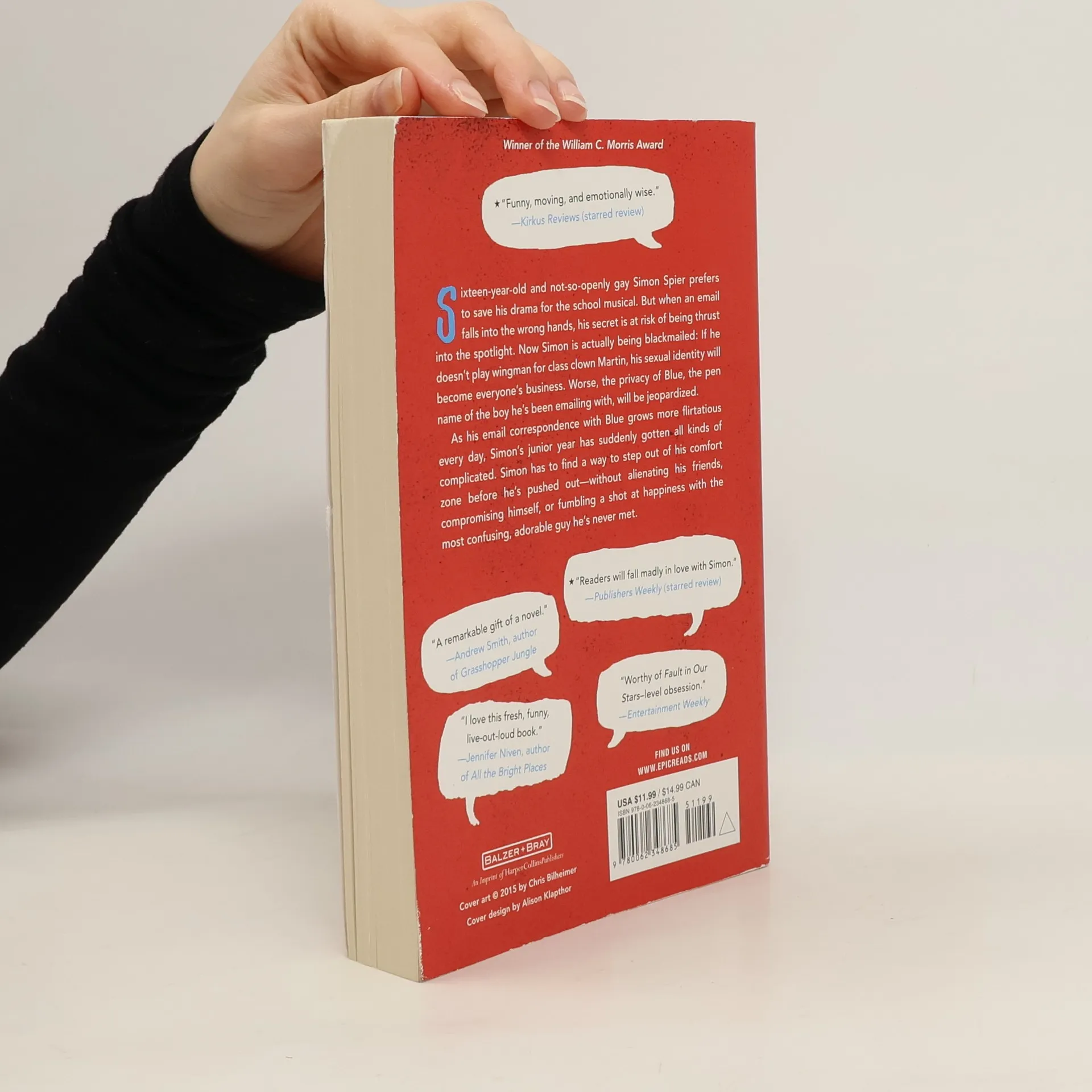 Now a major motion picture: Love, Simon, starring Nick Robinson and Katherine Langford! William C. Morris Award Winner: Best Young Adult Debut of the Year * National Book Award Longlist "A remarkable gift of a novel."—Andrew Smith, author of Grasshopper Jungle "I am so in love with this book."—Nina LaCour, author of Hold Still "Feels timelessly, effortlessly now."—Tim Federle, author of Better Nate Than Ever "The best kind of love story."—Alex Sanchez, Lambda Award-winning author of Rainbow Boys and Boyfriends with Girlfriends Sixteen-year-old and not-so-openly gay Simon Spier prefers to save his drama for the school musical. But when an email falls into the wrong hands, his secret is at risk of being thrust into the spotlight. Now change-averse Simon has to find a way to step out of his comfort zone before he's pushed out—without alienating his friends, compromising himself, or fumbling a shot at happiness with the most confusing, adorable guy he's never met. Incredibly funny and poignant, this twenty-first-century coming-of-age, coming out story—wrapped in a geek romance—is a knockout of a debut novel by Becky Albertalli.
