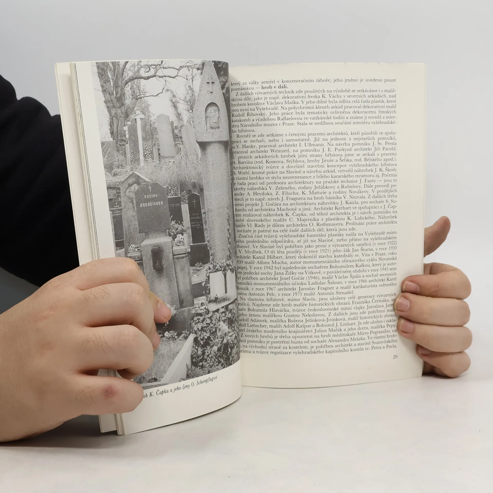 Uměleckohistorickou studii o vývoji vyšehradského hřbitova a soupis významných hrobů doplňují černobílé fotografie a plánek. Kniha sleduje historii pohřbívání na Vyšehradě, zvláště je však zaměřena na vznik a vývoj národního pohřebiště Slavína na konci 19. století. Text připomíná úlohu Svatoboru na jeho vzniku a první zde pohřbené osobnosti. Hodně prostoru je věnováno vyšehradským hrobům, jejich sochařské a umělecké výzdobě, přičemž jsou obsaženy i údaje o jednotlivých sochařích. Součástí knihy je soupis hrobů s číslem, jménem a autorem výzdoby.