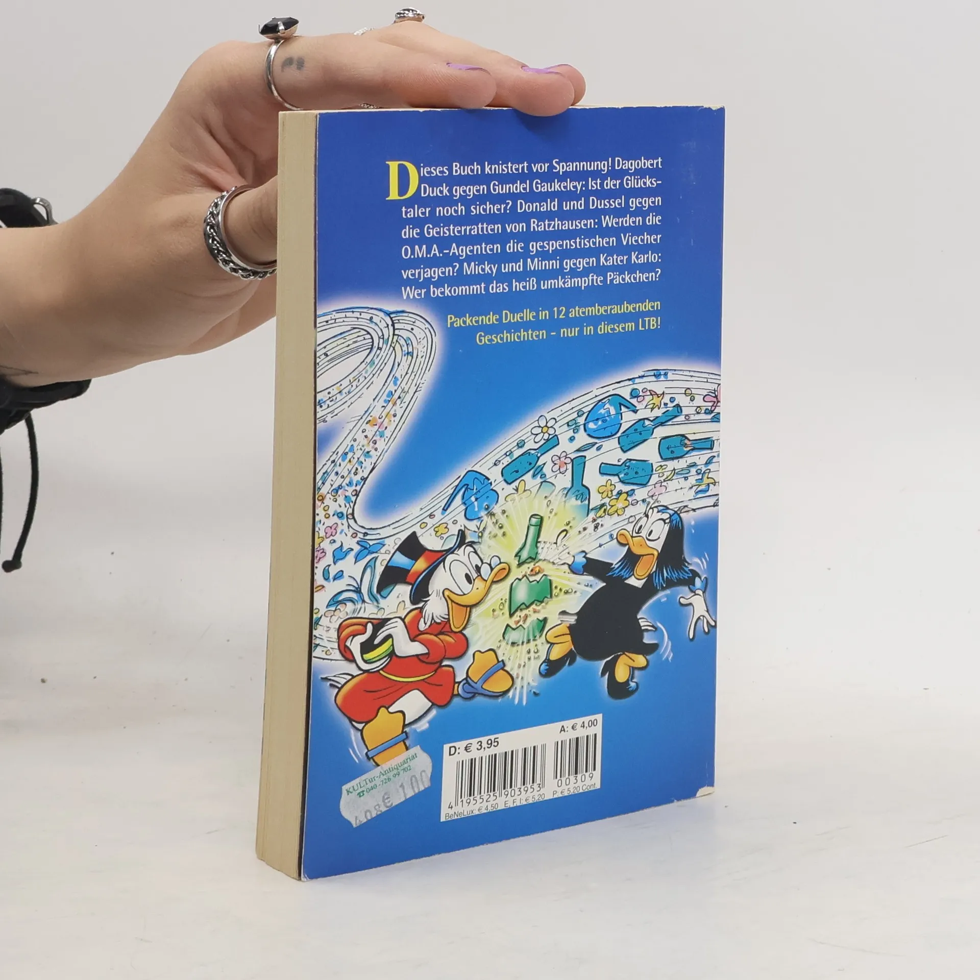 Diese Buch knistert vor Spannung! Dagobert Duck gegen Gundel Gaukeley: Ist der Glückstaler noch sicher?Donald und Dussel gegen die Geisterratten von Ratzhausen: Werden die O.M.A.-Agenten die gespenstischen Viecher verjagen? Micky und Minnie gegen Kater Karlo: Wer bekommt das heiß umkämpfte Päckchen?Packende Duelle in 12 atemberaubenden Geschichten - nur in diesem LTB