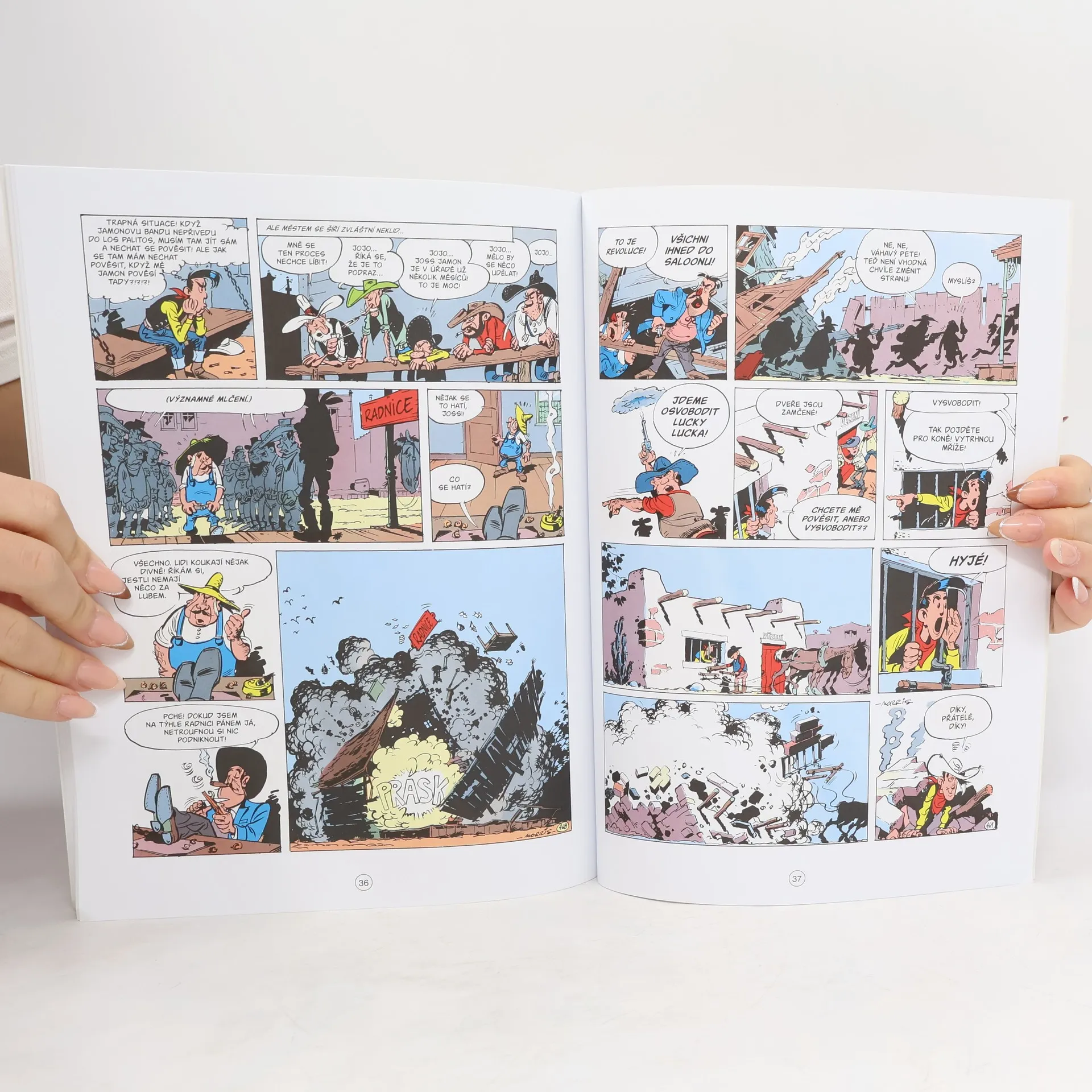 Další humorný komiksový příběh Luckyho Luka, muže, který střílí rychleji než jeho stín. Lucky Luke je v maléru. Tentokrát mu jde opravdu o krk. Je křivě obviněný z loupeže a před oběšením může uniknout jen tím, že dopadne skutečné viníky. Jenže gang Josse Jamona je nebezpečný. Je složený z těch největších mizerů Divokého Západu, kteří se usídlí v pohraničním městě a ovládnou ho. Není nic, co by jim nepatřilo. Lucky Lukeovi nezbývá jiná možnost než ta nejhorší - vstoupit do politického boje. Nakladatelská anotace.
