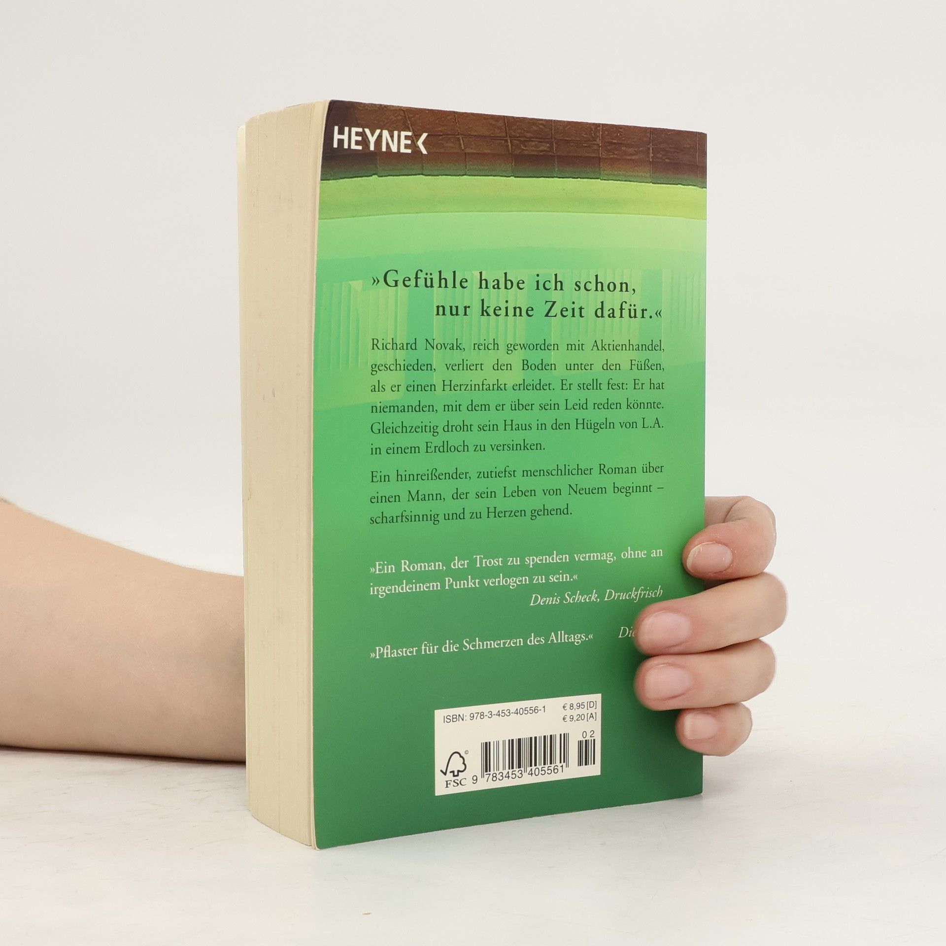 „Gefühle habe ich schon, nur keine Zeit dafür.“ Richard Novak, reich geworden mit Aktienhandel, geschieden, verliert den Boden unter den Füßen, als er einen Herzinfarkt erleidet. Er stellt fest: Er hat niemanden, mit dem er über sein Leid reden könnte. Gleichzeitig droht sein Haus in den Hügeln von L. A. in einem Erdloch zu versinken. Ein hinreißender, zutiefst menschlicher Roman über einen Mann, der sein Leben von Neuem beginnt – scharfsinnig und zu Herzen gehend.