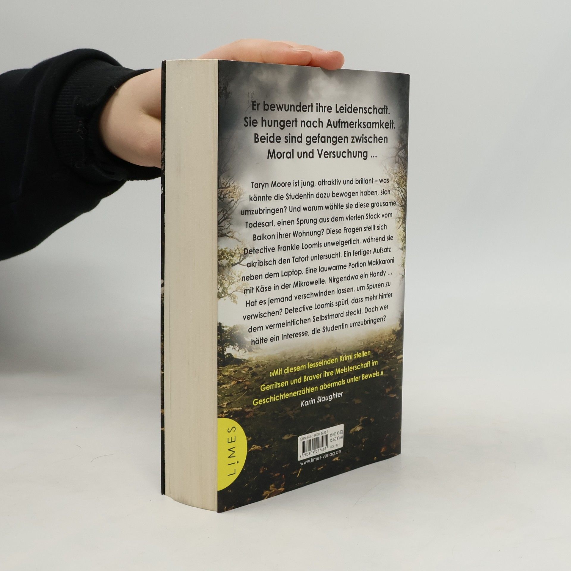 Der brandneue Pageturner aus der Feder der Bestsellerautoren Tess Gerritsen und Gary Braver – ein Spannungshochkaräter über Obsession, Versuchung und menschliche Schwächen. Taryn Moore ist jung, attraktiv und brillant – warum sollte sie sich umbringen? Detective Frankie Loomis spürt sofort, dass mehr hinter der Geschichte steckt, als sie den Tatort des vermeintlichen Selbstmords untersucht. Die Studentin hat sich aus dem Fenster ihres Apartments gestürzt. Doch ihr Handy ist spurlos verschwunden. Hat es jemand verschwinden lassen, um Spuren zu vertuschen?Für den Englischprofessor Jack Dorian war Taryn die vollendete Versuchung: intelligent, aufmerksam und zu hundert Prozent tabu. Doch Taryn hatte auch eine dunkle Seite, eine Neigung zu obsessiver Liebe – auch für Jack. Und mit ihrem Tod haben seine Probleme erst richtig begonnen.Loomis‘ Ermittlungen enthüllen pikante Geheimnisse. Schnell wird klar, dass Jack Dorian mehr weiß, als er offenbart. Doch hat er auch einen kaltblütigen Mord auf dem Gewissen? Weitere Stand-alone-Krimis von Tess Gerritsen: »Gute Nacht, Peggy Sue«»Kalte Herzen«»Roter Engel«»Trügerische Ruhe«»In der Schwebe«»Leichenraub«»Totenlied«»Das Schattenhaus«