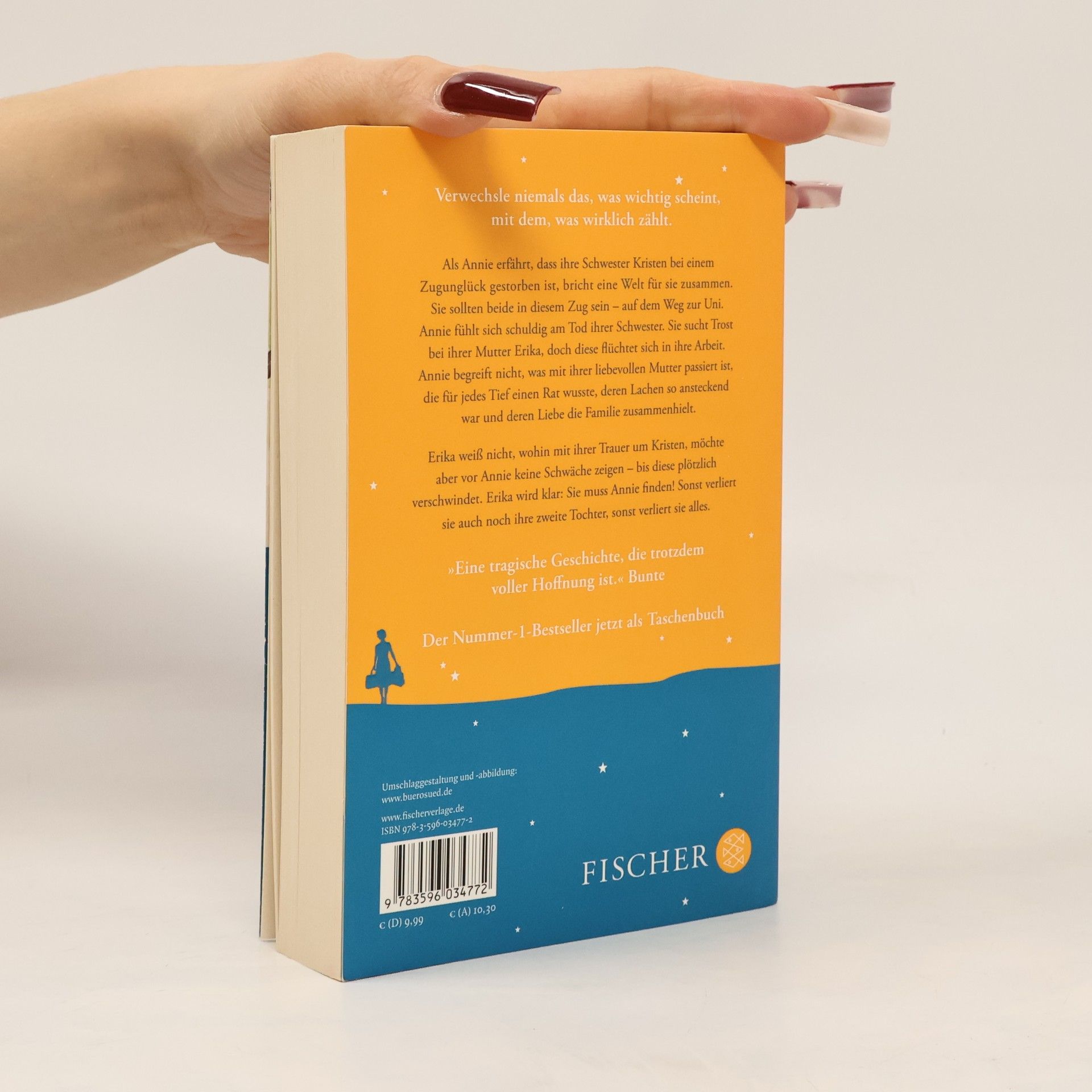 Endlich im Taschenbuch: Mit ›Und nebenan warten die Sterne‹ hat Erfolgsautorin Lori Nelson Spielman einen weiteren ergreifenden und aufrüttelnden Bestseller geschrieben, der Mut macht, sich auf die Suche nach dem Glück zu machen. Man weiß nie, wo man es finden wird. Als Annie erfährt, dass ihre Schwester Kristen bei einem Zugunglück gestorben ist, bricht eine Welt für sie zusammen. Sie sollten beide in diesem Zug sein – auf dem Weg zur Uni. Annie fühlt sich schuldig am Tod ihrer Schwester. Sie sucht Trost bei ihrer Mutter Erika, doch diese flüchtet sich in ihre Arbeit. Annie begreift nicht, was mit ihrer liebevollen Mutter passiert ist, die für jedes Tief einen Rat wusste, deren Lachen so ansteckend war und deren Liebe die Familie zusammenhielt.Erika weiß nicht wohin mit ihrer Trauer um Kristen, möchte aber vor Annie keine Schwäche zeigen – bis diese plötzlich verschwindet. In ihrer Verzweiflung denkt sie immer wieder an eine Lebensweisheit ihrer Mutter: »Verwechsle niemals das, was wichtig ist, mit dem, was wirklich zählt«. Erika wird klar: Sie muss Annie finden! Sonst verliert sie auch noch ihre zweite Tochter. Sonst verliert sie vielleicht alles.