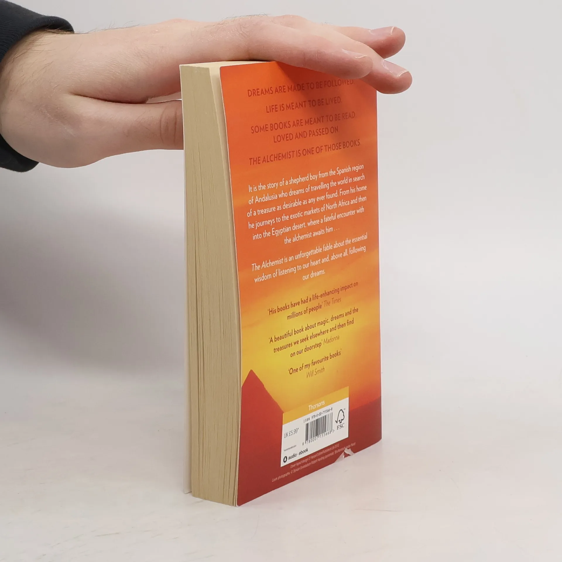 This text is a magical fable about learning to listen to your heart, read the omens strewn along life's path and, above all, following your dreams. The book tells the story of Santiago, an Andalusian shepherd boy who dreams of travelling the world in search of a worldly treasure as fabulous as any ever found. From his home in Spain he journeys to the markets of Tangiers, and from there into the Egyptian desert, where a fateful encounter with the alchemist awaits him. With a visionary blend of spirituality, magical realism and folklore, the author hopes that The Alchemist has the power to inspire nations and change people's lives.
