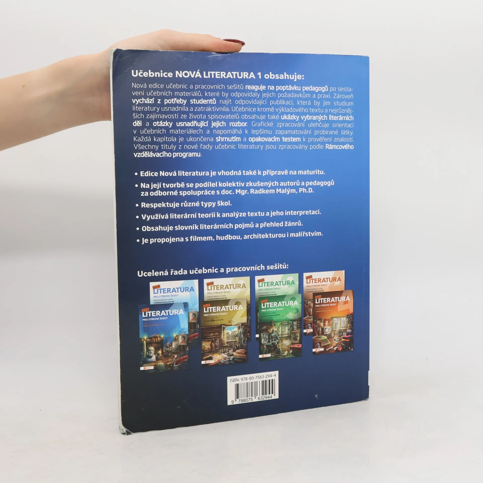 Učebnice kromě výkladového textu a nejrůznějších zajímavostí ze života spisovatelů obsahuje také ukázky vybraných literárních děl a otázky usnadňující jejich rozbor. Grafické zpracování ulehčuje orientaci v učebních materiálech a napomáhá lepšímu zapamatování probírané látky. Každá kapitola je ukončena shrnutím a opakovacím testem k prověření znalostí. Nová edice učebnic a pracovních sešitů reaguje na poptávku pedagogů po sestavení učebních materiálů, které by odpovídaly jejich požadavkům a praxi. Zároveň vychází z potřeby studentů najít odpovídající publikaci, která by jim studium literatury usnadnila a zatraktivnila.