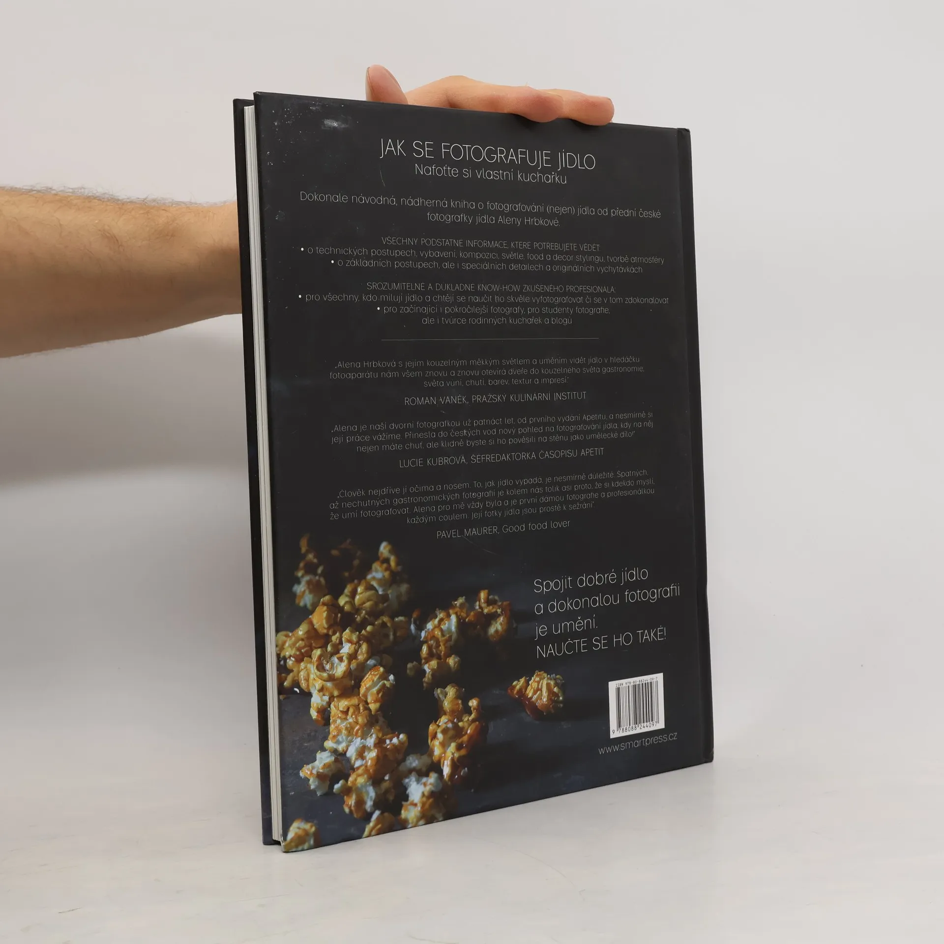 Přední profesionální fotografka jídla Alena Hrbková přináší první českou knihu o této disciplíně. Kniha je vytvořena pro všechny, kdo se zajímají o fotografování jídla, ať už v domácím využití (rodinné kuchařky, blogy) nebo i na cestě k profesionálním kvalitám. Najdete zde vše potřebné, od technického vybavení a všech praktických kroků až po vytváření atmosféry. Dokonale návodný manuál a umělecký zážitek v jednom!