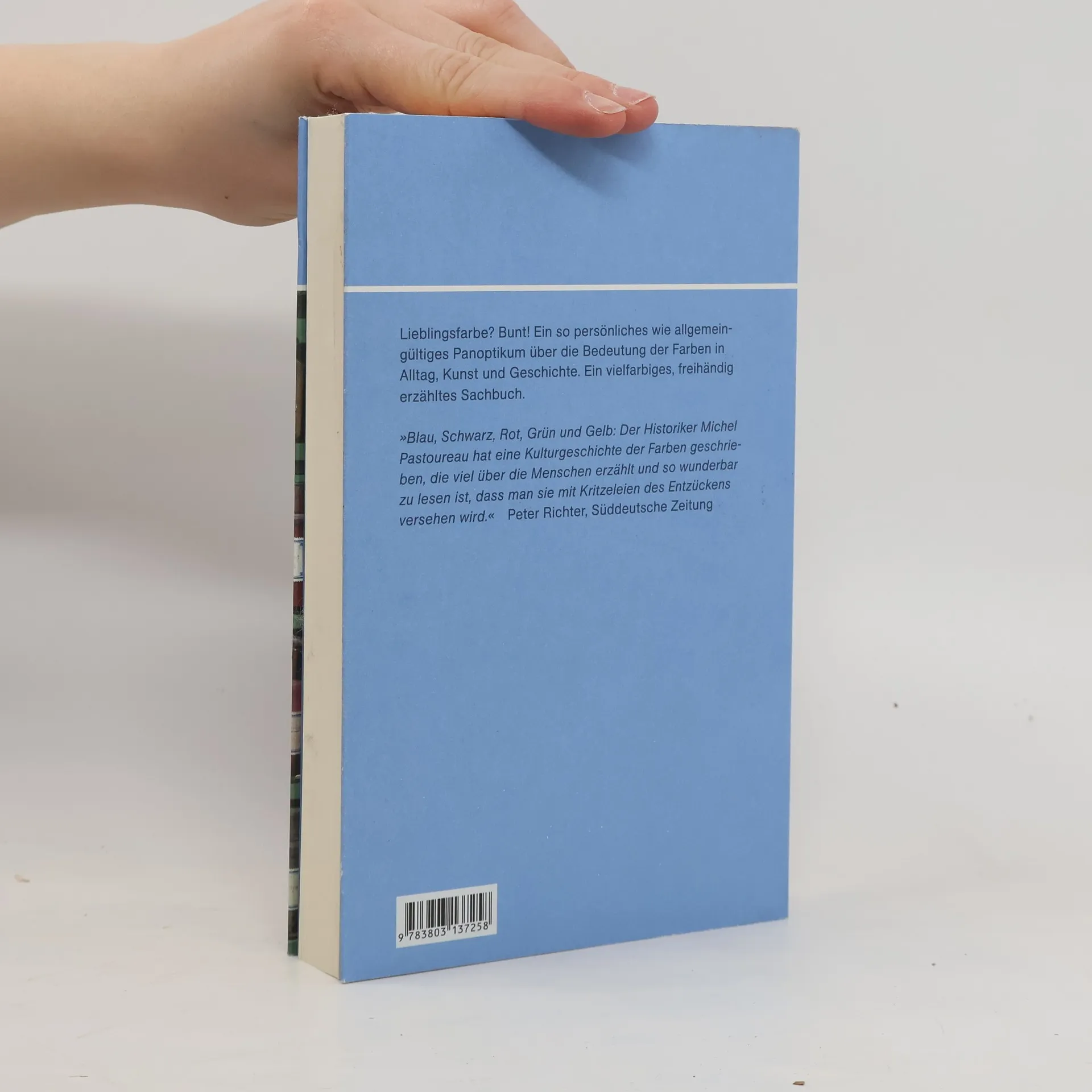 Dass ein bestimmter Geschmack oder ein spezieller Geruch eine ganze Dominokette an Erinnerungen auslösen kann, dass das Gedächtnis eine sinnliche Erfahrung speichert und mit bestimmten Gefühlen verknüpft, ist in der Literatur oft beschrieben worden. Dass die verlorene Zeit jedoch ebenso spontan und scheinbar unwillkürlich mittels Farben und Formen wiedergefunden werden kann, zeigt Michel Pastoureau in diesem schillernd bunten anekdotischen Essay. Er erzählt von blauen Hosen und von Rotkäppchens Haube, von Trikots und Farbfilmen, von schwarzen Katzen und monochromen Menüs, von Mondrian und Vermeer, von Vierfarbkugelschreibern und Rotgrünblindheit. Wie beiläufig verbindet er in seinem kurzweiligen Parcours private Erinnerungen mit soziologischen, historischen und naturwissenschaftlichen Erkenntnissen. Nach der Lektüre wird man die bunte Welt mit anderen Augen sehen!