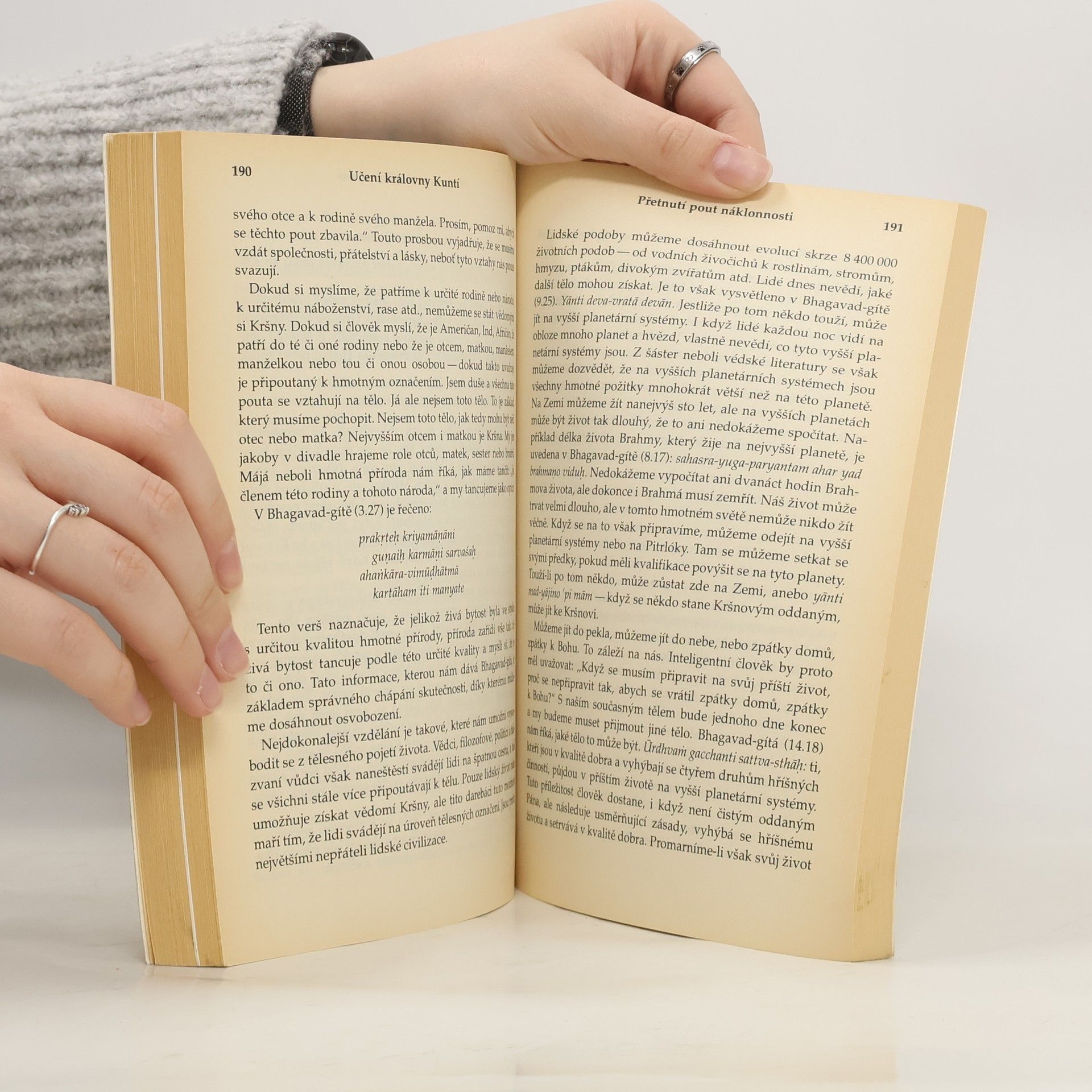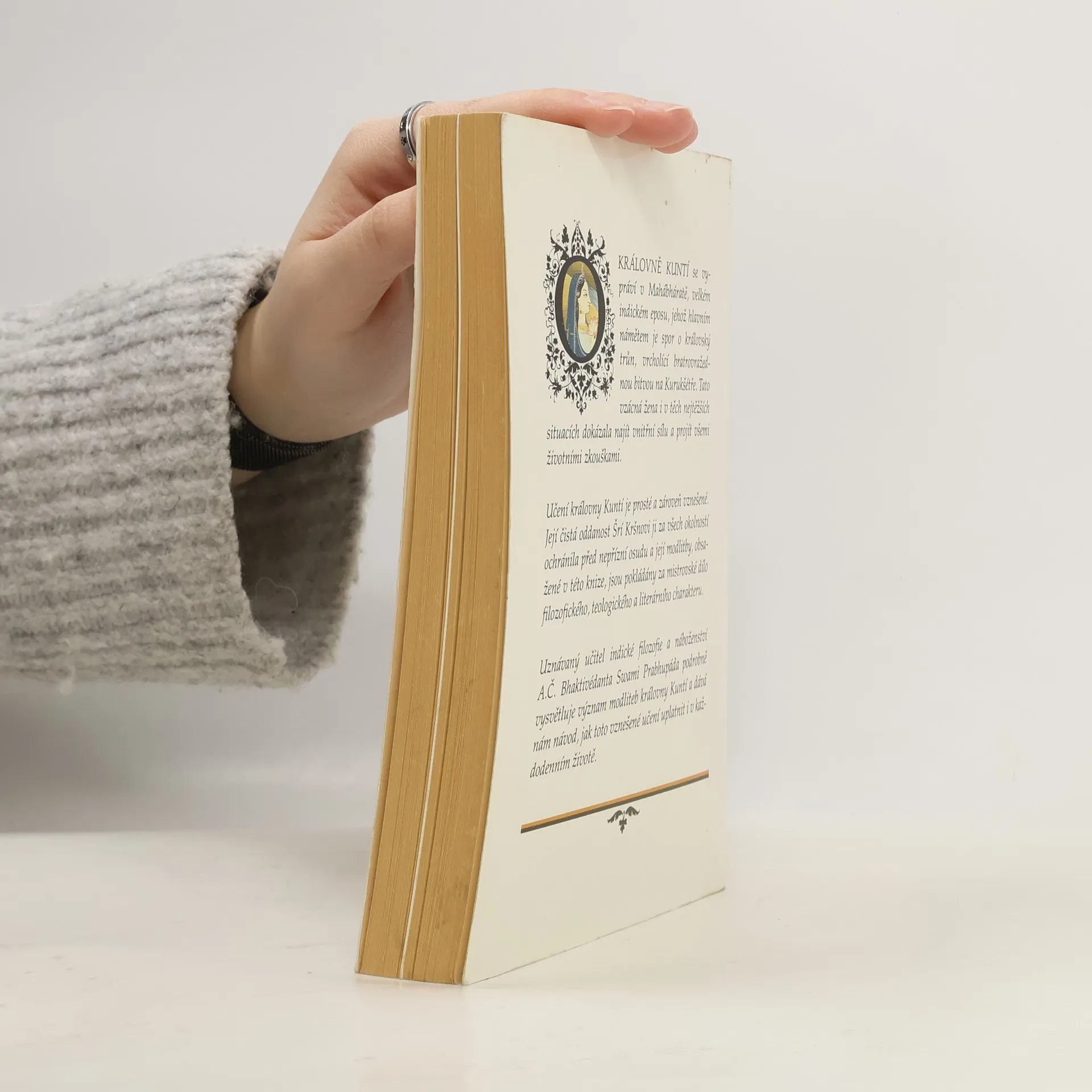 Na cestě ke Kršnovi. O KRÁLOVNĚ KUNTÍ se vypráví v Mahábháratě, velkém indickém eposu, jehož hlavním námětem je spor o královský trůn, vrcholící bratrovražednou bitvou na Kurukšétře. Tato vzácná žena i v těch nejtěžších situacích dokázala najít vnitřní sílu a projít všemi životními zkouškami. Učení královny Kuntí je prosté a zároveň vznešené. Její čistá oddanost Šrí Kršnovi ji za všech okolností ochránila před nepřízní osudu a její modlitby, obsažené v této knize, jsou pokládány za mistrovské dílo filozofického, teologického a literárního charakteru. Uznávaný učitel indické filozofie a náboženství A. Č. Bhaktivédanta Swami Prabhupáda podrobně vysvětluje význam modliteb královny Kuntí a dává nám návod, jak toto vznešené učení uplatnit i v každodenním životě.