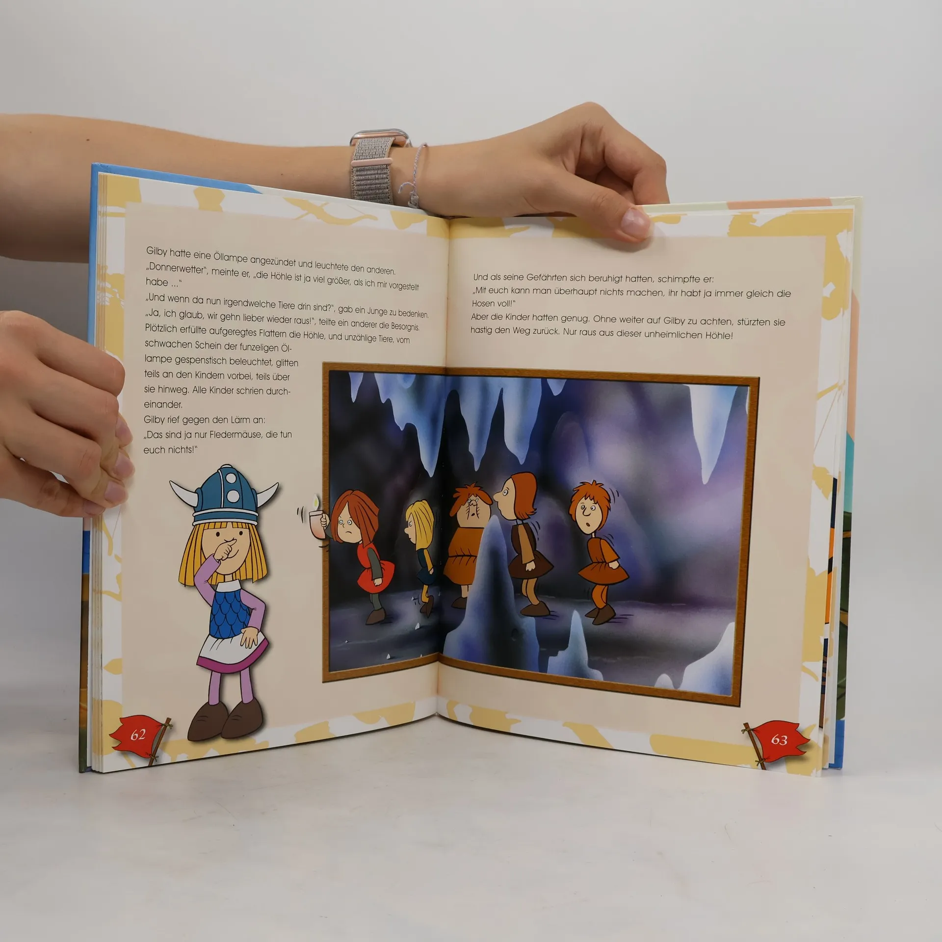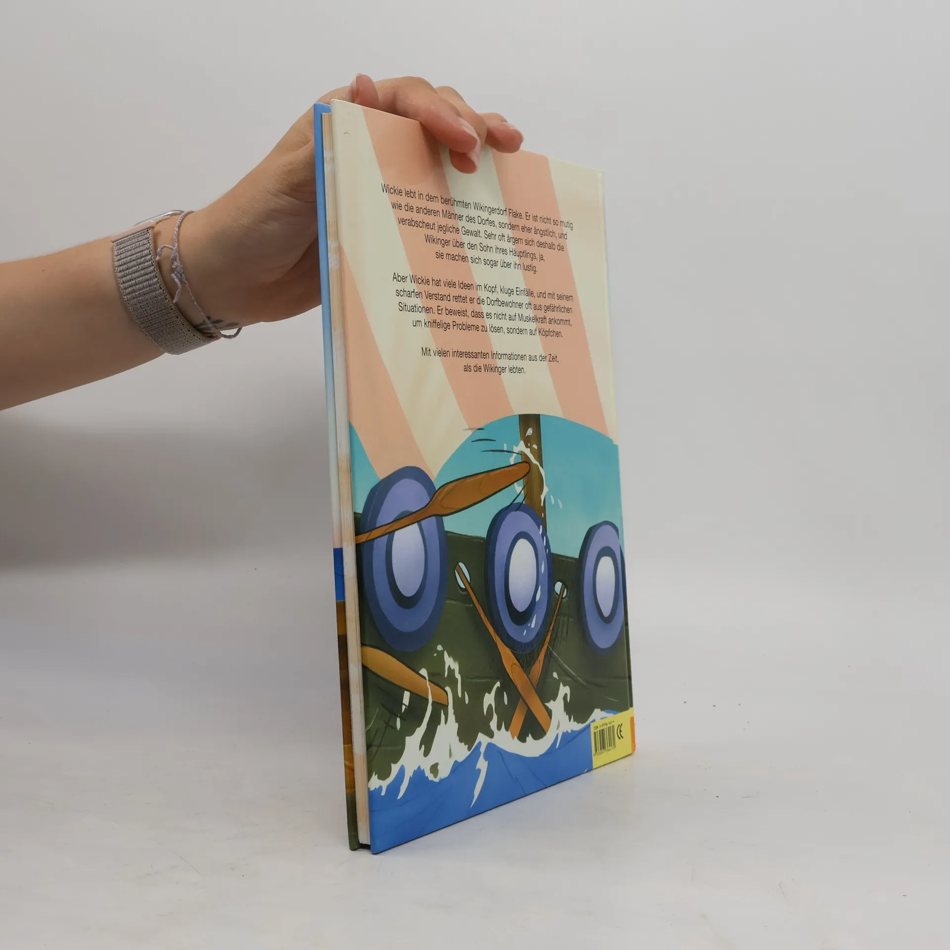 Wickie lebt in dem berühmten Wikingerdorf Flake. Er ikst nicht so mutig wie die anderen Männer des Dorfes, sondern eher ängstlich, und verabscheut jegliche Gewalt. Sehr oft ärgern sich deshalb die Wikinger über den Sohn ihres Häuptlings, ja, sie machen sich sogar über ihn lustig. Aber Wickie hat viele Ideen im Kopf, kluge Einfälle, und mit seinem scharfen Verstand rettet er die Dorfbewohner oft aus gefährlichen Situationen. Er beweist, dass es nicht auf Muskelkraft ankommt, um kniffelige Probleme zu lösen, sondern auf Köpfchen. Mit vielen interessanten Informationen aus der Zeit, als die Wikinger lebten.