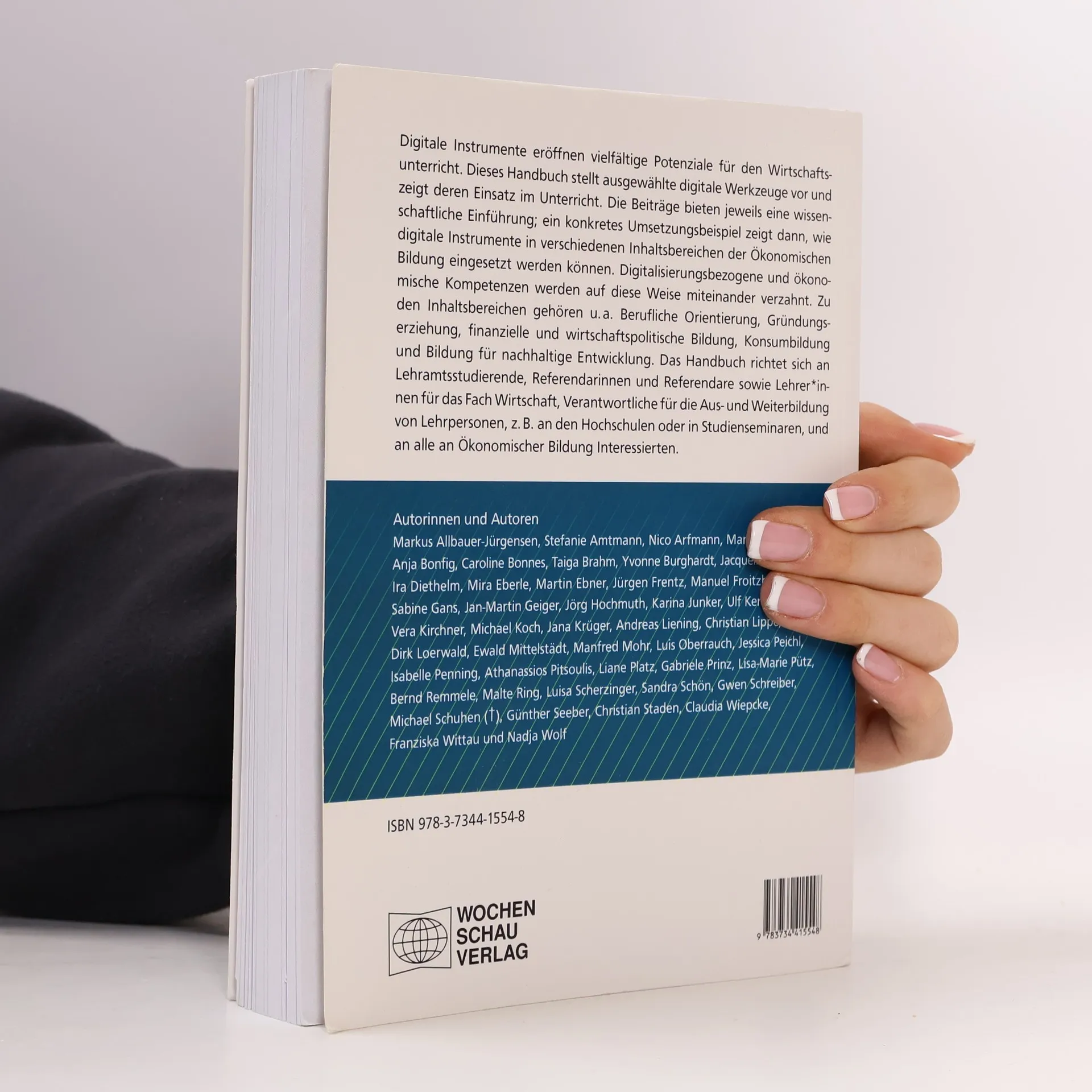 Digitale Instrumente eröffnen vielfältige Potenziale für den Wirtschaftsunterricht. Das Handbuch stellt ausgewählte digitale Werkzeuge vor und zeigt deren Einsatz im Unterricht. Die Beiträge bieten jeweils eine wissenschaftliche Einführung. Ein konkretes Umsetzungsbeispiel zeigt dann, wie digitale Instrumente in verschiedenen Inhaltsbereichen der Ökonomischen Bildung eingesetzt werden können. Damit verzahnen die Beiträge digitalisierungsbezogene und ökonomische Kompetenzen. Zu den Inhaltsbereichen gehören u. a. die berufliche Orientierung, Gründungserziehung, finanzielle und wirtschaftspolitische Bildung, Konsumbildung und Bildung für nachhaltige Entwicklung.