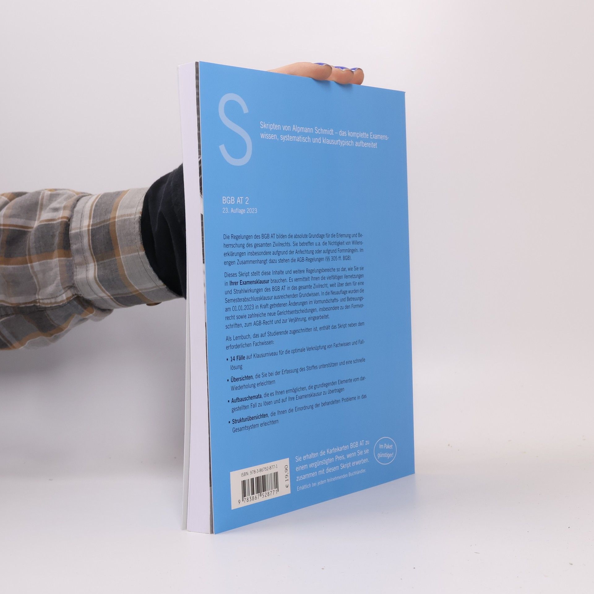 VorteileKonzentration auf das ExamenswissenOptimale Verknüpfung von Fachwissen und FalllösungÜbersichtliche SchemataStruktur- und Klausurhinweise Zur Reihe Alpmann Skripten - Das komplette Examenswissen Zum Werk Das Buch enthält als Fortsetzung zum Skript BGB AT 1 folgende Themen aus dem Allgemeinen Teil des BGB: 1. Teil: Die Nichtigkeit der Willenserklärung und des Vertrags (mangelnde Geschäftsfähigkeit, Nichtigkeit nach §§ 134, 138 BGB, Formbedürftigkeit, Anfechtung, Teilnichtigkeit, Umdeutung und Bestätigung) 2. Teil: Die Allgemeinen Geschäftsbedingungen (AGB) (Anwendungsbereich der §§ 305 ff BGB, Einbeziehung von AGB, Auslegung und Inhaltskontrolle, Rechtsfolgen der Unwirksamkeit einer Vertragsbestimmung) 3. Teil: Fristen, Termine, Verjährung Zielgruppe Studierende