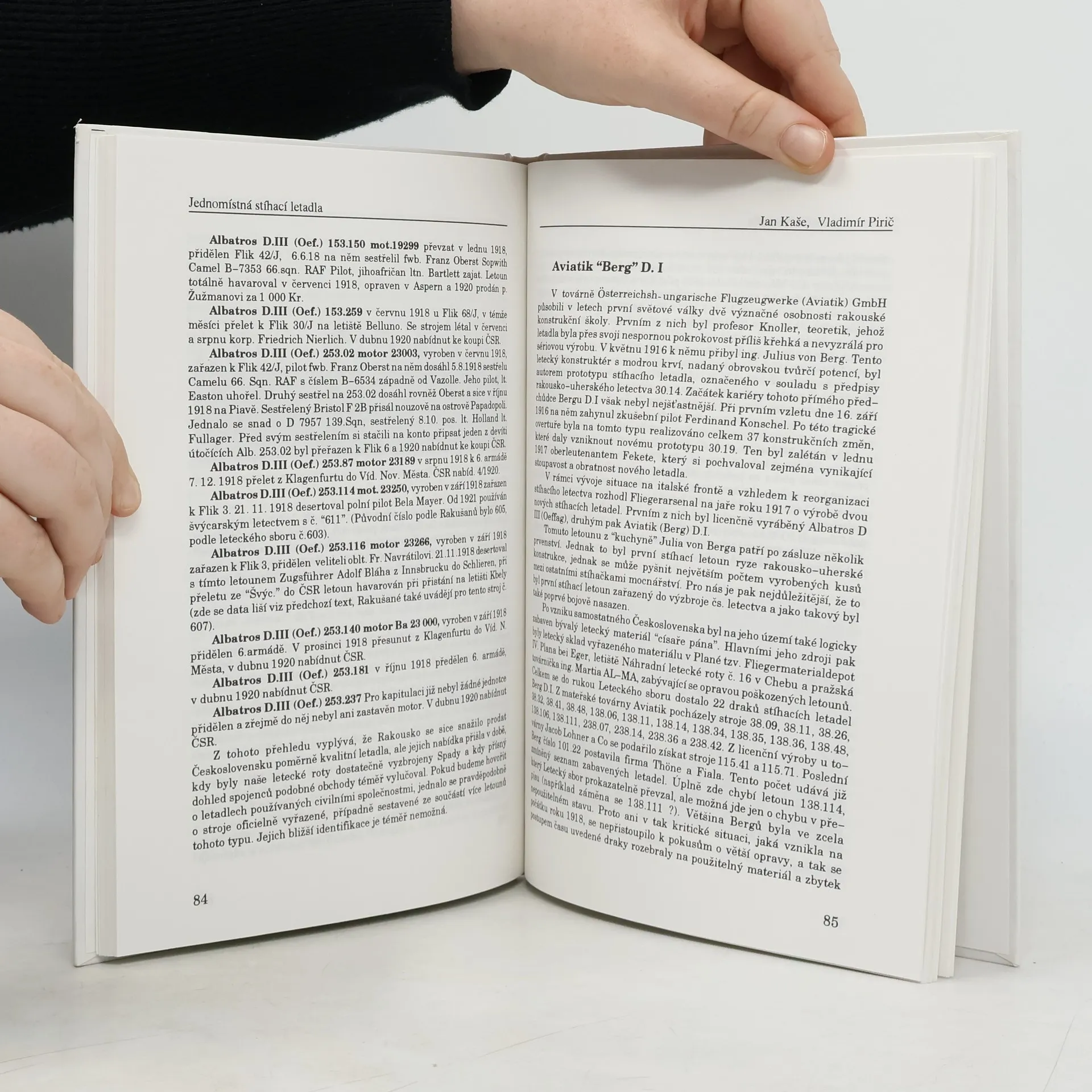 Jednomístná stíhací letadla. V prvním dílu plánovaného cyklu se čtenář dozví archivně podložené skutečnosti o vzniku československého stíhacího letectva po říjnu 1918. Páteř knihy tvoří rozsáhlá stať o letounech Spad VII a Spad XIII, která zachycuje dějiny našeho popřevratového letectví. Další kapitoly pak popisují letouny Fokker DVII, Roland DVIb, Berg, Nieuport, Albatros Oeffeg a další, které se kdy ocitly na území Čech, Moravy a Slovenska.... celý text
