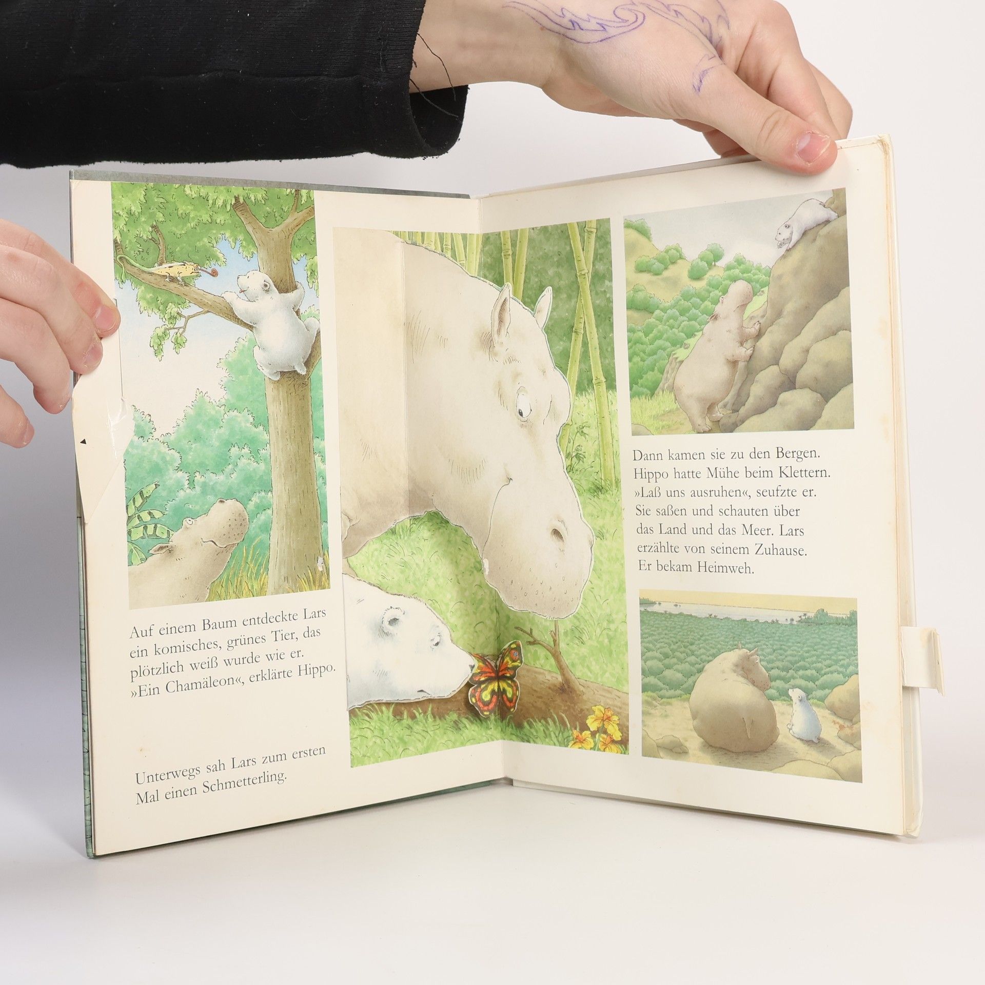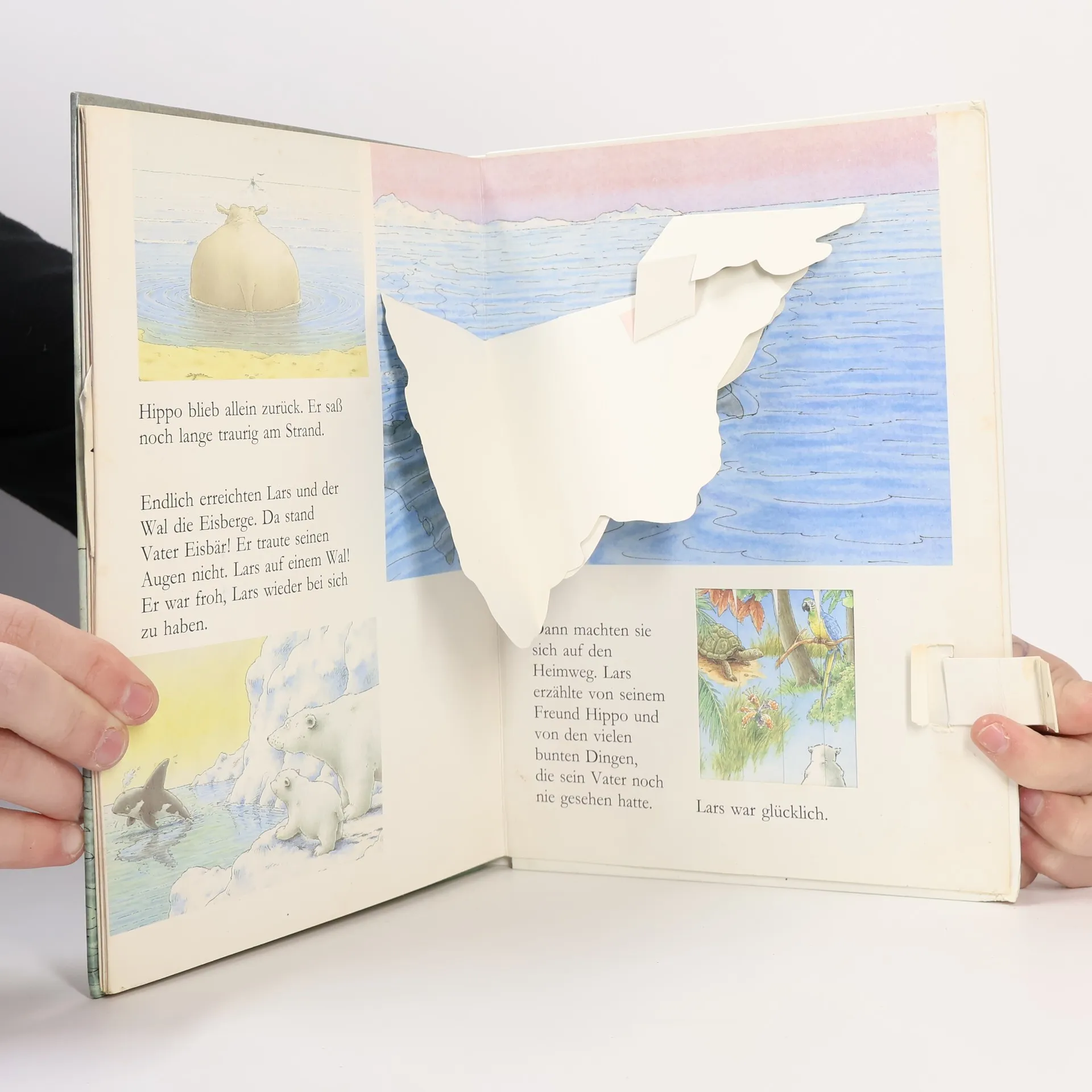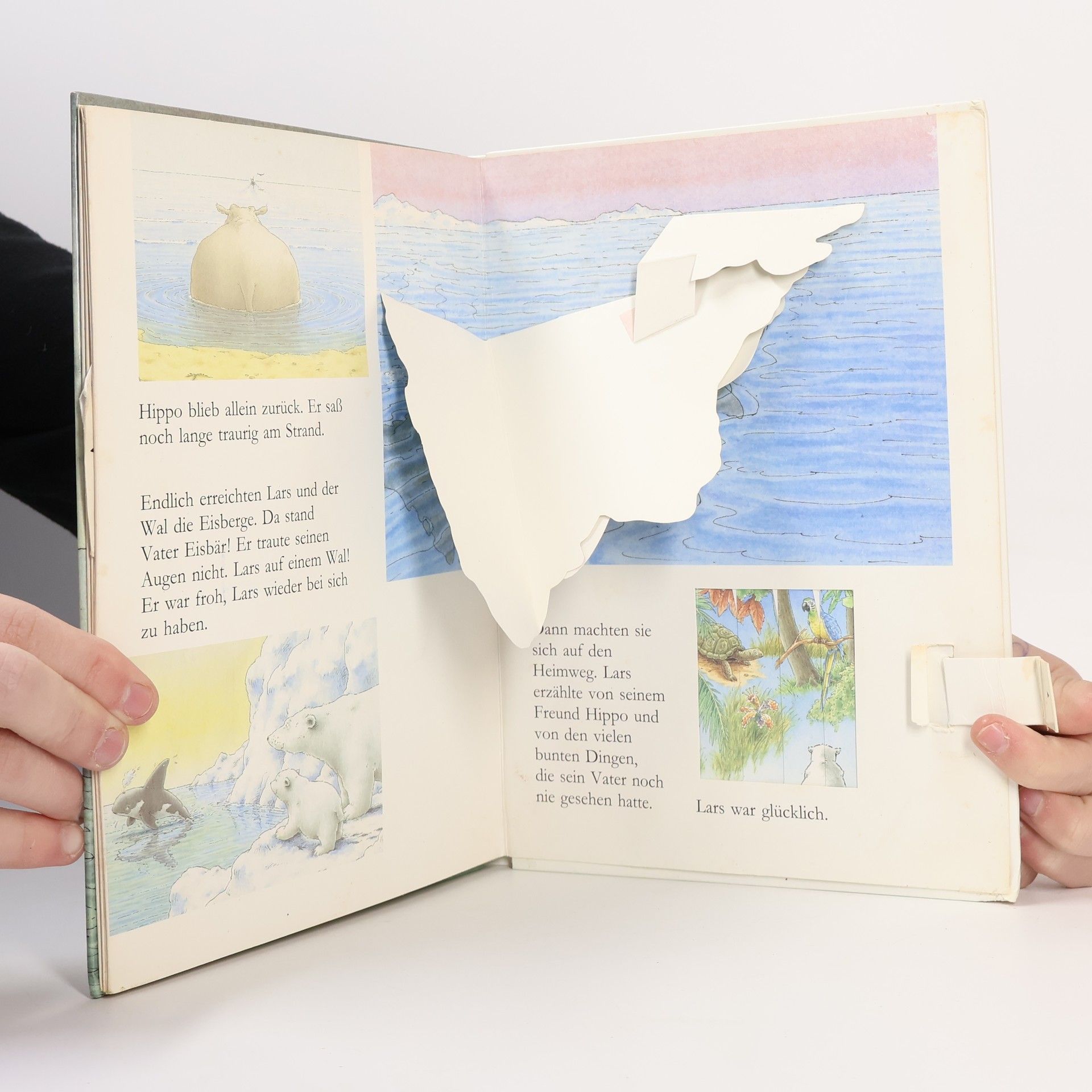 Ein kleiner weißer Eisbär treibt auf einer Eisscholle und auf einem Faß bis nach Afrika. Er entdeckt die seltsamsten Farben und lernt ein Flußpferd kennen. Auf dem Rücken eines Wals gelangt er in seine kühle Heimat zurück. Eine gemütvolle, heitere Tiergeschichte.