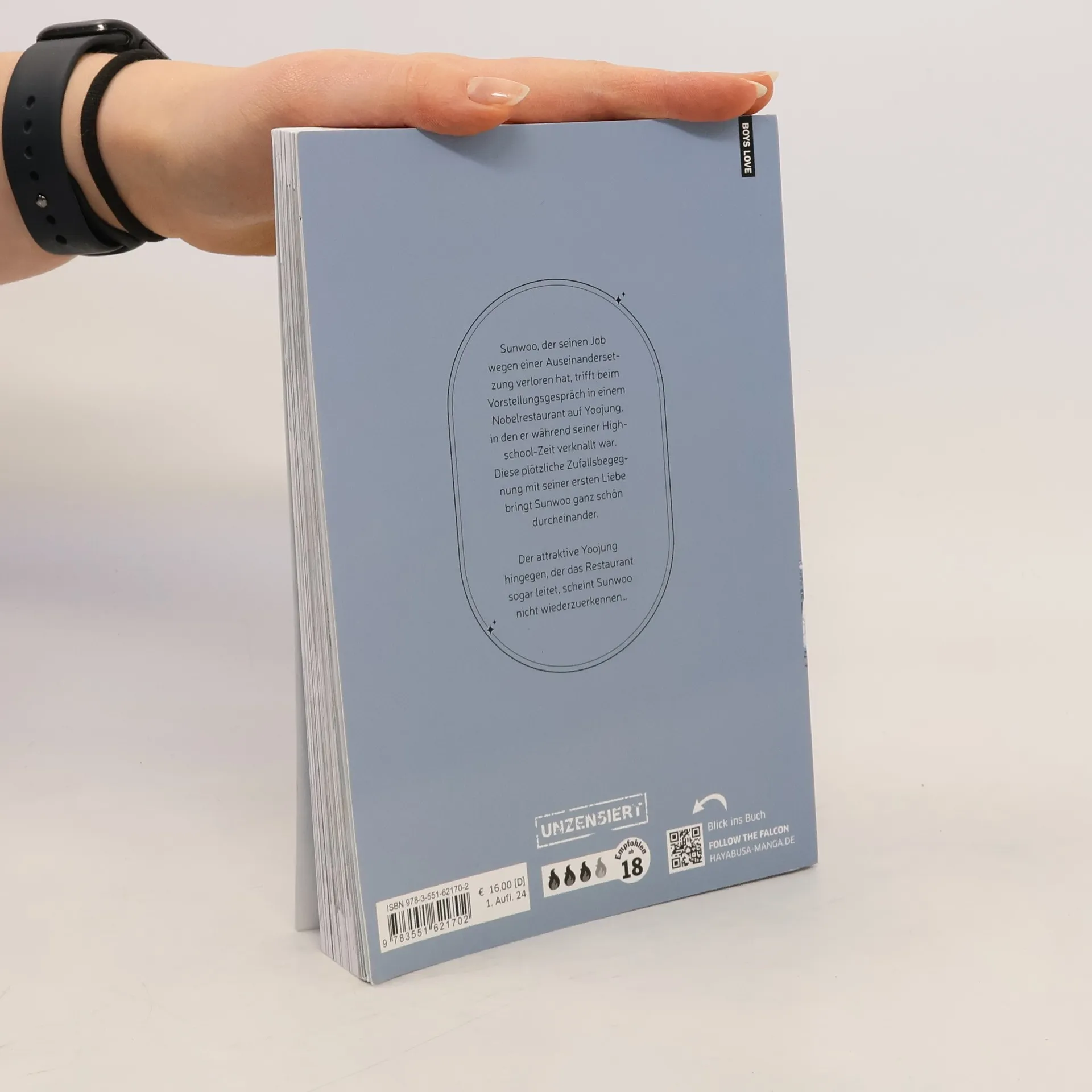 Der neue Webtoon der Erfolgsautorin Hyeon-sook Lee (THE BEAST MUST DIE) – unzensiert und in Vollfarbe! Exklusive SNS Card in Band 1 – nur in 1. Auflage! Sunwoo, der seinen Job wegen einer Auseinandersetzung verloren hat, trifft beim Vorstellungsgespräch in einem Nobelrestaurant auf Yoojung, in den er während seiner Highschool-Zeit verknallt war. Diese plötzliche Zufallsbegegnung mit seiner ersten Liebe bringt Sunwoo ganz schön durcheinander. Der attraktive Yoojung hingegen, der das Restaurant sogar leitet, scheint Sunwoo nicht wiederzuerkennen… Spice-Level: 5 von 5 Chilis. Ein unzensierter +18-Titel mit vielen heißen Szenen für Kenner*innen des Genres. Schärfer geht's nicht! Abgeschlossen in 4 Bänden Unzensiert Dies ist Band 1 der Serie. Ein fesselndes Liebesdrama, das unter die Haut geht – perfekt für alle, die nach einer leidentschaftlichen und melancholischen Geschichte suchen.