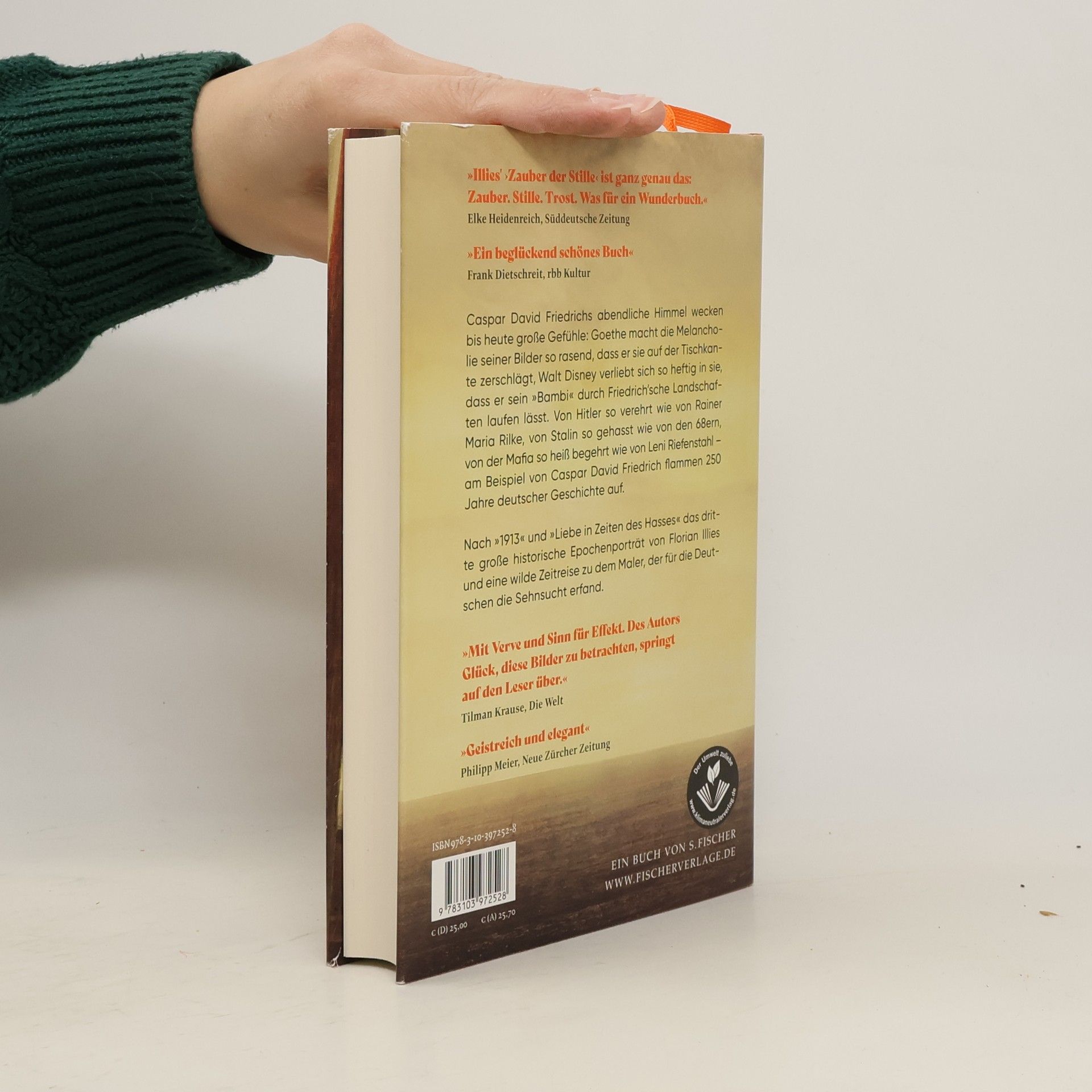 »So elegant und mühelos erzählt. Dieses neue Buch von Florian Illies zu lesen, ist wie einen Billy-Wilder-Film zu schauen – einfach großartig.« Ferdinand von Schirach Mit Florian Illies kann man Vergangenheit plötzlich als Gegenwart erleben. In »Zauber der Stille« breitet er erstmals die abenteuerlichen Geschichten Caspar David Friedrichs vor uns aus. Eine wilde Zeitreise zu dem Mann, der für die Deutschen die Sehnsucht erfand. Friedrichs abendliche Himmel wecken seit Jahrhunderten die leidenschaftlichsten Gefühle: Goethe macht ihre Melancholie so rasend, dass er sie auf der Tischkante zerschlagen will, Walt Disney hingegen verliebt sich so heftig in sie, dass er sein »Bambi« nur durch Friedrich'sche Landschaften laufen lässt. Von Hitler so verehrt wie von Rainer Maria Rilke, von Stalin so gehasst wie von den 68ern, von der Mafia so heiß begehrt wie von Leni Riefenstahl – am Beispiel von Caspar David Friedrich werden in diesem mitreißend erzählten Buch 250 Jahre deutscher Geschichte sichtbar. Und Friedrich, der Maler, wird zu einem Menschen aus Fleisch und Blut. Nach »1913« und »Liebe in Zeiten des Hasses« das dritte große historische Epochenportrait von Florian Illies.