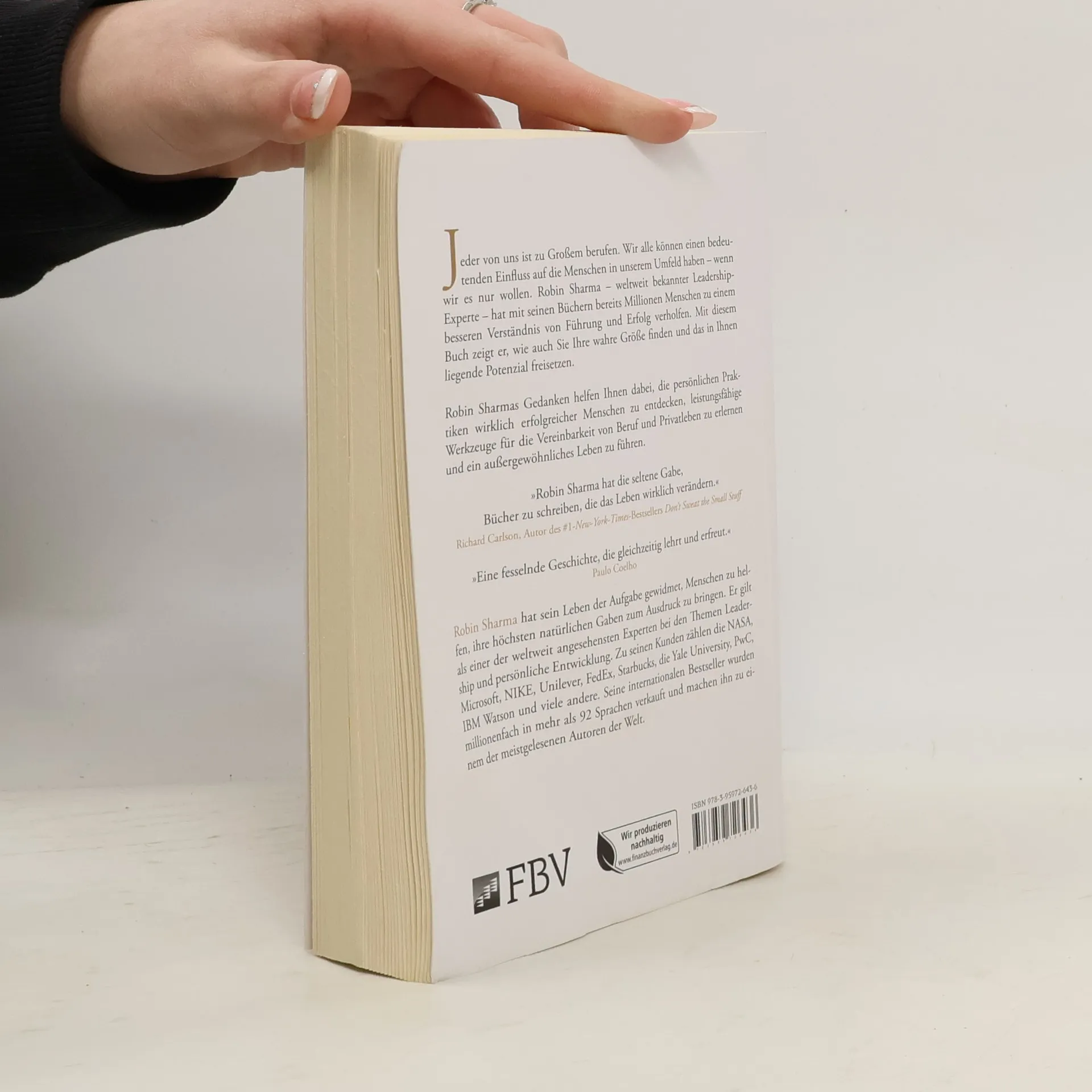 Jeder von uns ist zu Großem berufen. Wir alle können einen bedeutenden Einfluss auf die Menschen in unserem Umfeld haben – wenn wir es nur wollen. Robin Sharma – weltweit bekannter Leadership-Experte – hat mit seinen Büchern bereits Millionen Menschen zu einem besseren Verständnis von Führung und Erfolg verholfen. Mit diesem Buch zeigt er, wie jeder seine wahre Größe findet und das in ihm liegende Potenzial freisetzt. Robin Sharmas Gedanken helfen, die persönlichen Praktiken wirklich erfolgreicher Menschen zu entdecken, leistungsfähige Werkzeuge für die Vereinbarkeit von Beruf und Privatleben zu erlernen und ein außergewöhnliches Leben zu führen.