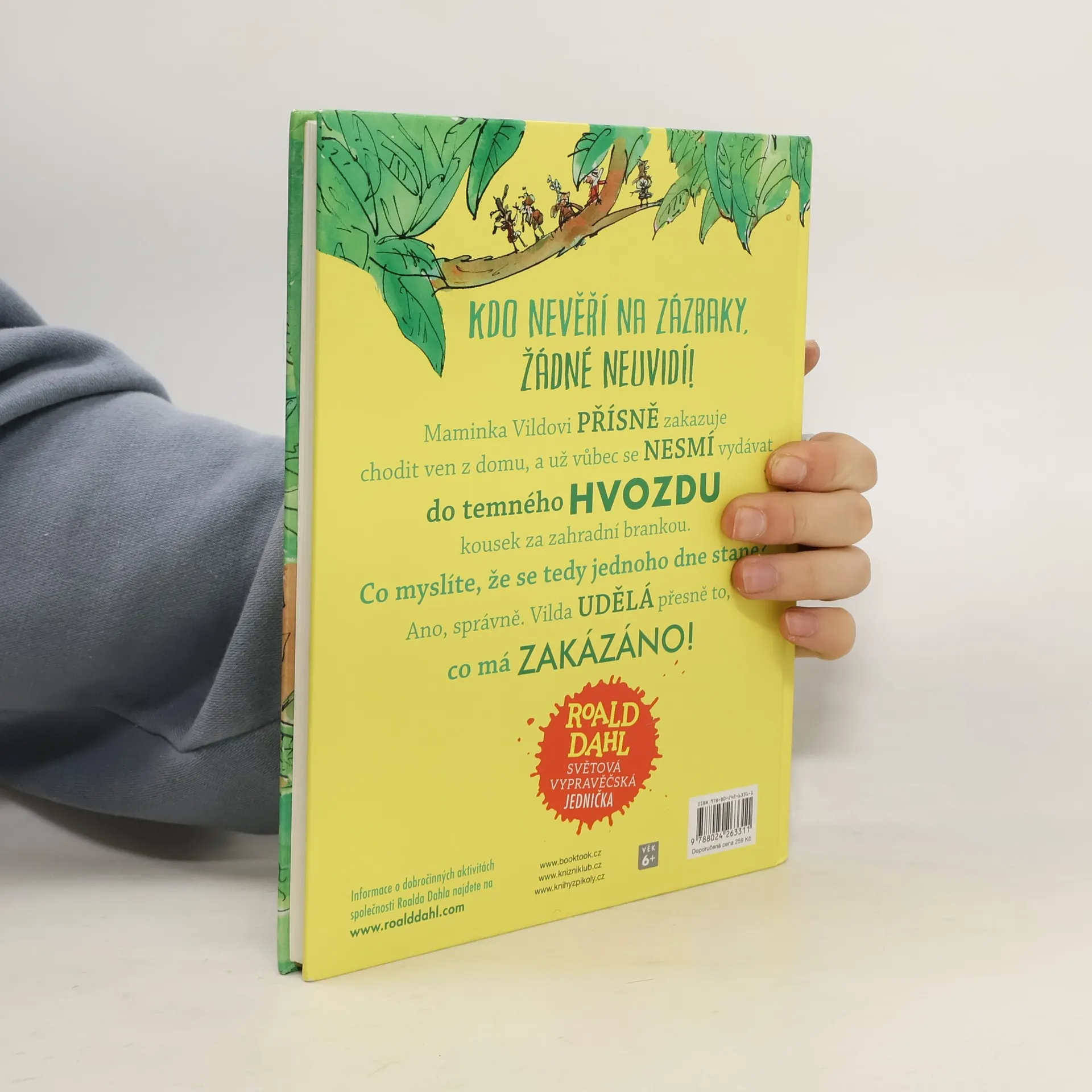 Maminka Vildovi přísně zakazuje chodit ven z domu, a už vůbec se nesmí vydávat do temného hvozdu kousek za zahradní brankou. Co myslíte, že se tedy jednoho dne stane? Ano, správně. Vilda udělá přesně to, co má zakázáno! Další úžasné dobrodružství od oblíbeného autora Roalda Dahla je určeno dětem od 6 let.