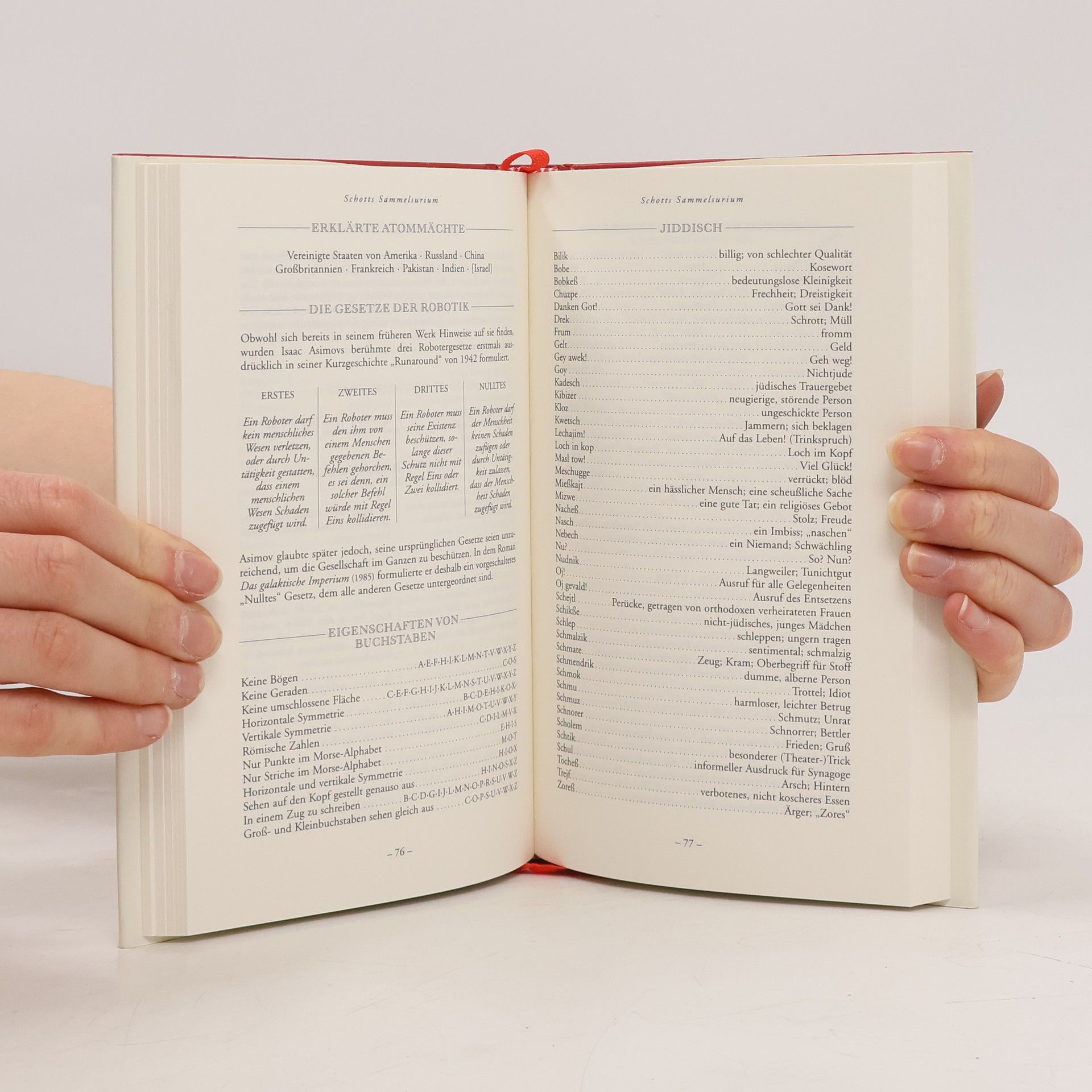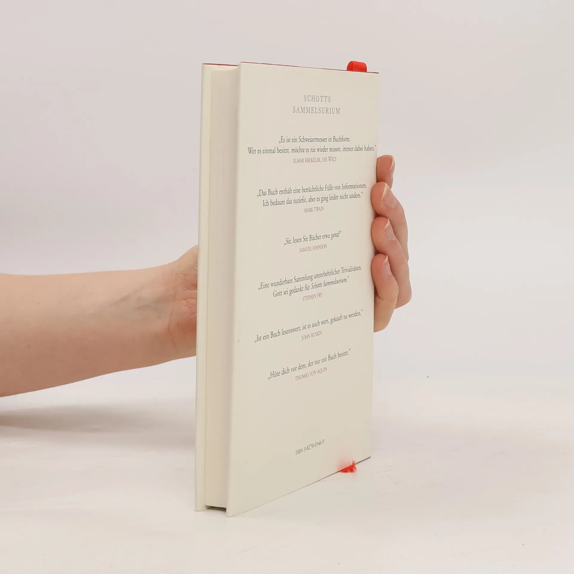 „Ben Schott ist ein Sammler von (scheinbaren) Nutzlosigkeiten: von kuriosen Statistiken, Klassifikationen, Hierarchien, Kategorien, Formaten, Bezeichnungen, Zitaten, Fachausdrücken, Namen, Definitionen, Abkürzungen, Größen, Symbolen, Phobien, Nomenklaturen und vielen anderen Merkwürdigkeiten. Ein Gemeinplatz, ein Potpourri, ein Mischmasch, ein Lexikon, ein Vademekum, ein Sammelsurium.“