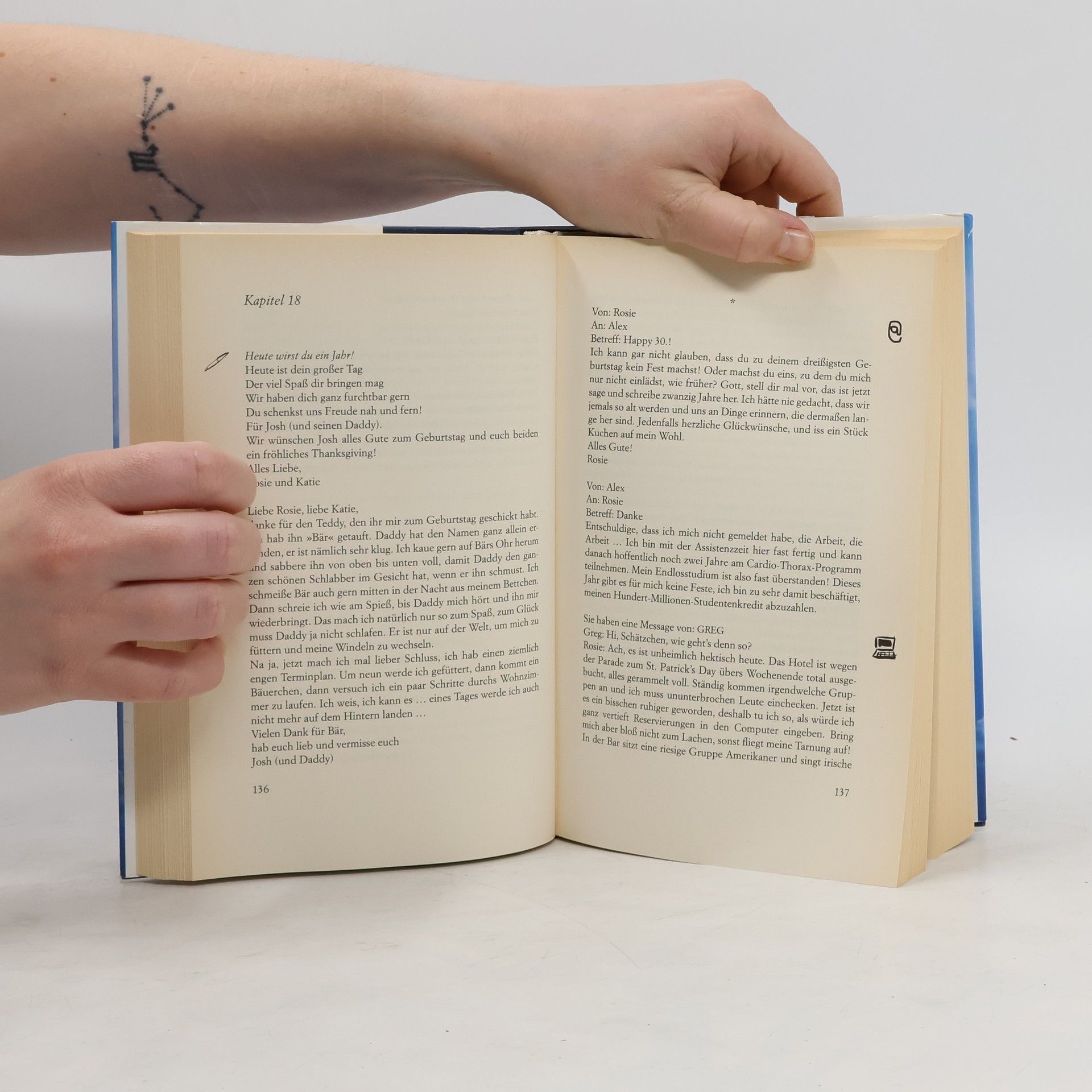 Alex und Rosie kennen sich, seit sie fünf Jahre alt sind. Alex muss kurz vor dem Abi mit seinen Eltern von Irland nach Amerika ziehen. Rosie will nachkommen und Hotelmanagement studieren, doch dann wird sie schwanger. Und das nicht von Alex. Sie zieht ihre Tochter allein groß, Alex heiratet eine Amerikanerin. Erst nach Jahren ist er wieder solo - doch inzwischen ist auch Rosie verheiratet ... In all den Jahren bleiben Alex und Rosie in Kontakt. Nicht nur mit Briefen, auch mit E-Mails, Chatnachrichten, SMS und allem anderen, was man sich heutzutage so schreiben kann. Doch es ist wie verhext: Rosie und Alex sind einfach wie die Königskinder ...
