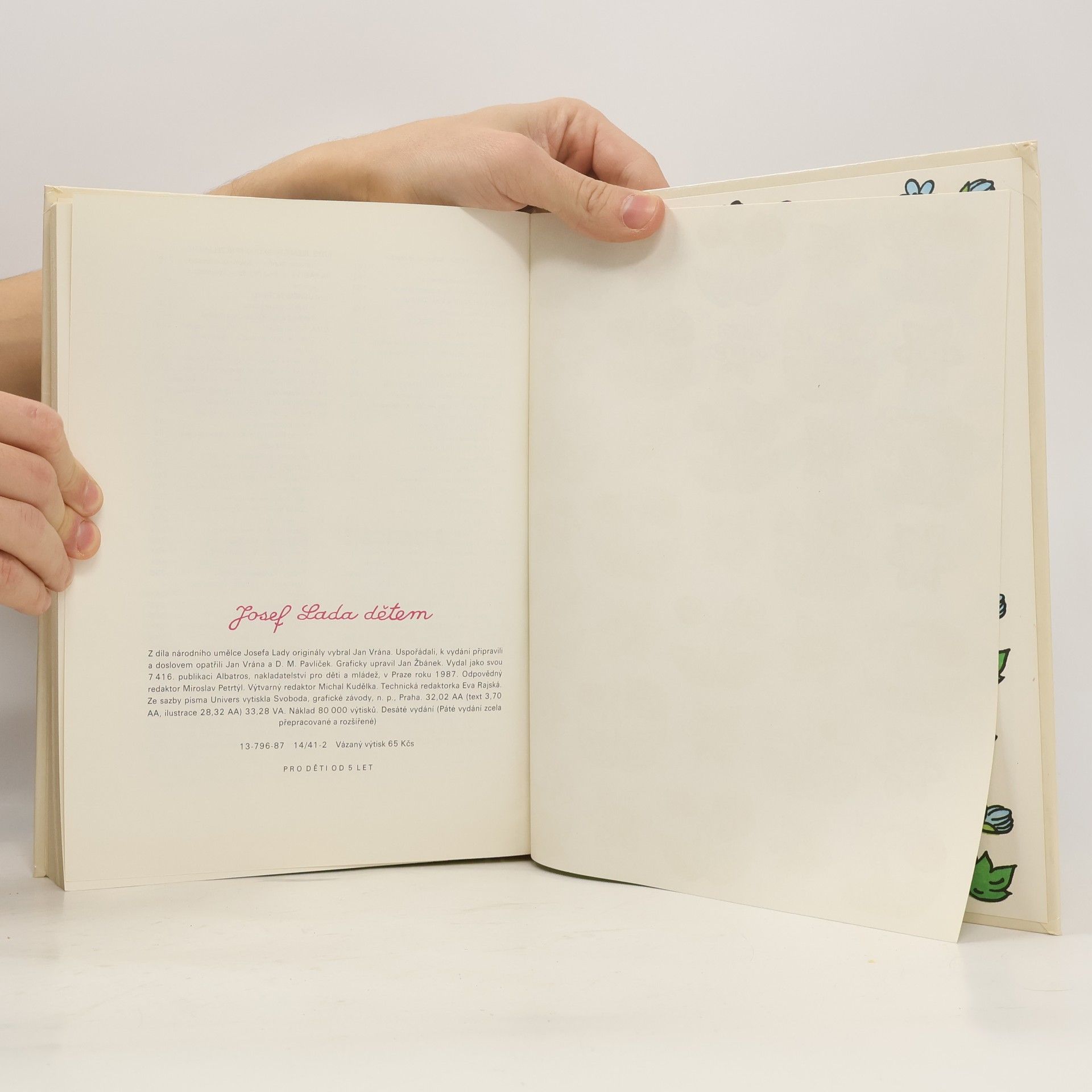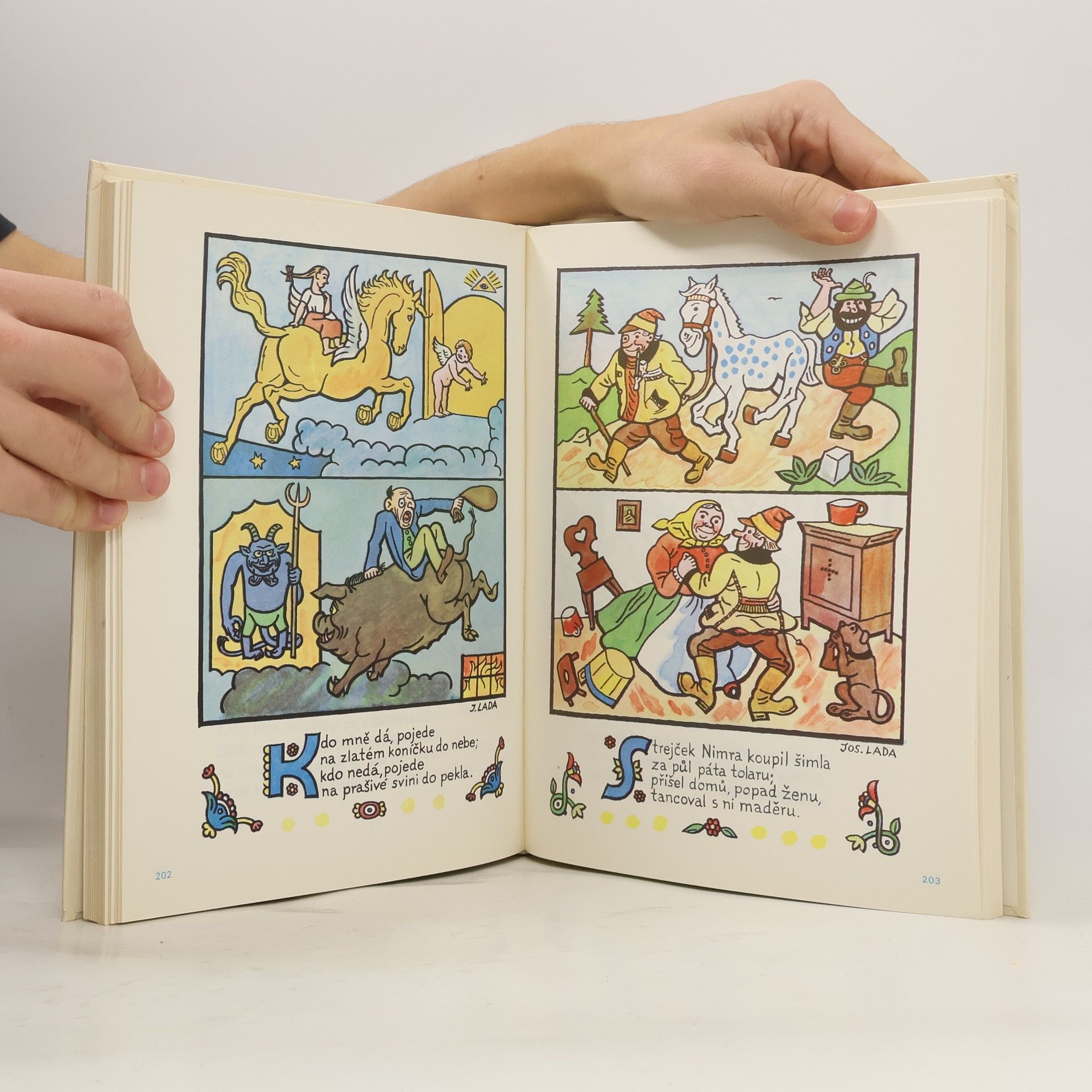 Lidová říkadla, bajky, autorovy vzpomínky na dětství strávené v malebné středočeské vesničce Hrusice, které doplňují verše J. Seiferta a F. Hrubína. A především spousta kouzelných Ladových obrázků s neopakovatelnou atmosférou. Uspořádal a doslov napsal Jan Vrána a D. M. Pavlíček.Graficky upravil Jan Žbánek. 80000 výt.