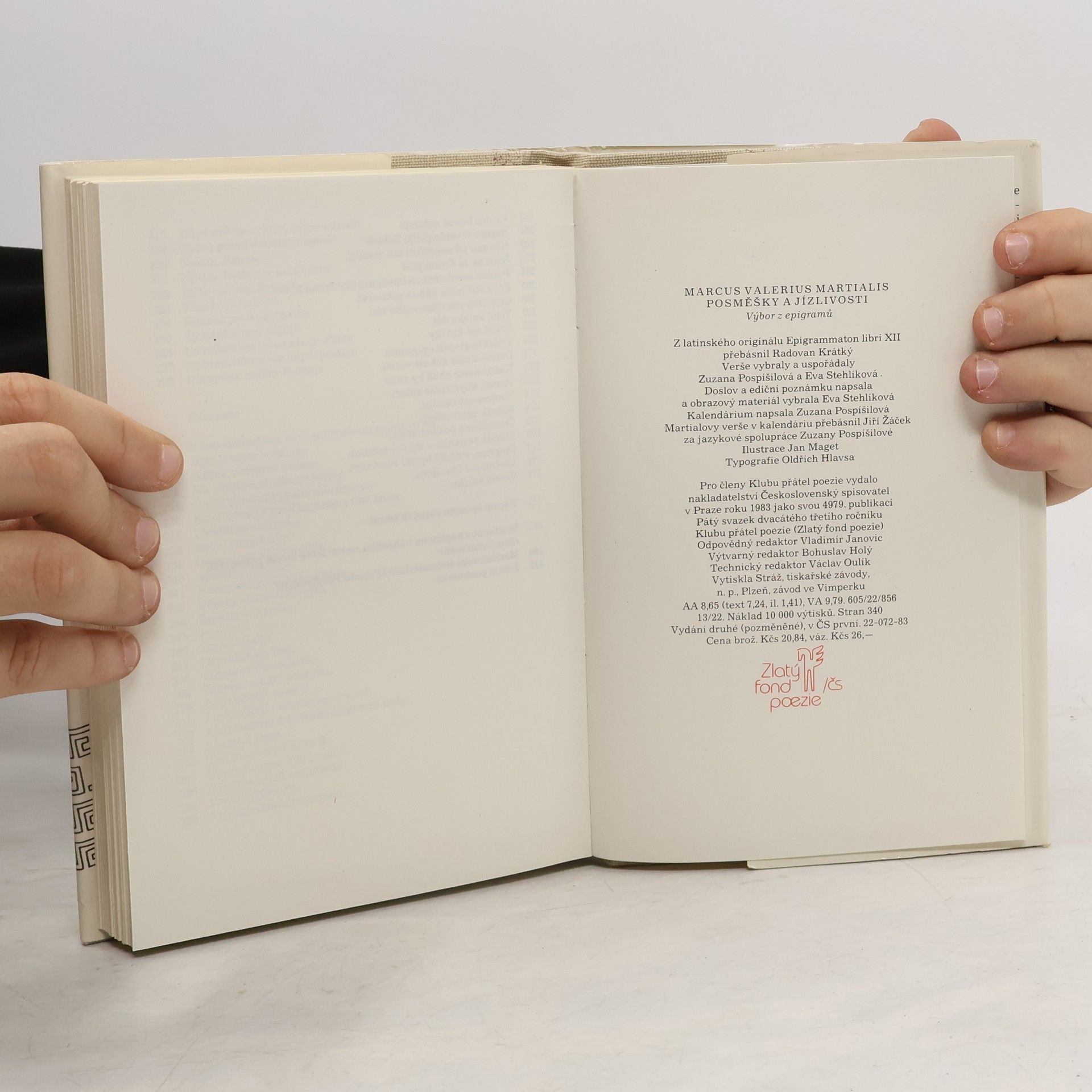 Výběr z Martialových Epigramů (z latinských originálů Marci Valerii Martialis Epigrammation libri) sestavený a přebásněný Radovanem Krátkým představuje satirický pohled na společenský život v Římě na přelomu našeho letopočtu.