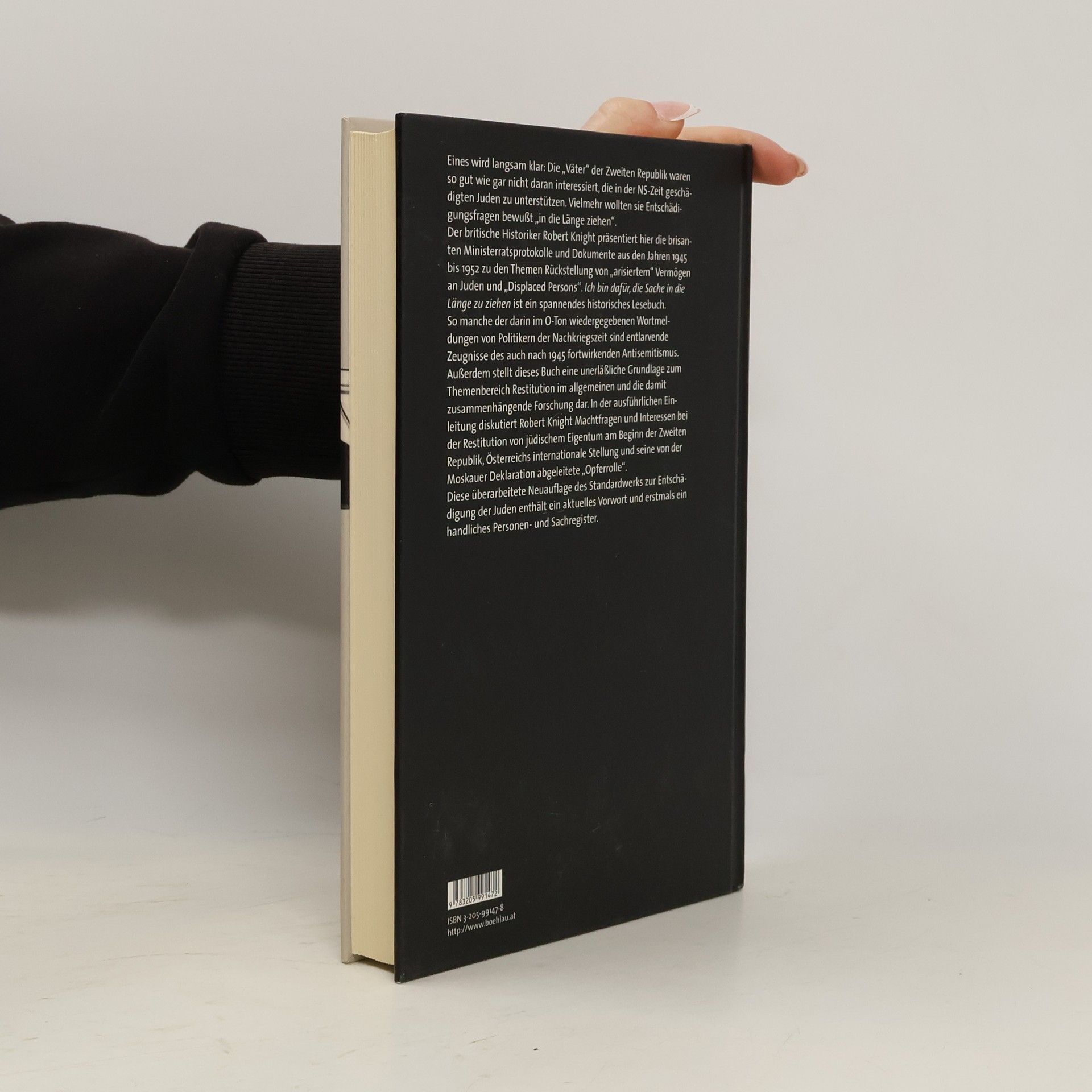 Endlich eine Neuauflage des lange vergriffenen Standardwerks! Traurig, aber wahr: Die „Väter“ der Zweiten Republik waren so gut wie nicht daran interessiert, die in der NS-Zeit geschädigten Juden zu unterstützen. Vielmehr wollten sie Entschädigungsfragen bewußt „in die Länge ziehen“. Der britische Historiker Robert Knight, zur Zeit Experte in der österreichischen Historikerkommission, hat in den 80er Jahren brisante Ministerratsprotokolle der Nachkriegszeit vorgelegt. Nun erscheint endlich eine (überarbeitete) Neuauflage des vergriffenen Standardwerks zur Entschädigung der Juden: Im Buch werden bedeutende Ministerratsprotokolle und Dokumente aus den Jahren 1945 bis 1952 zu den Themen Rückstellung von „arisiertem“ Vermögen an Juden und „Displaced Persons“ vollständig abgedruckt. Sie zeigen deutlicher als je zuvor die Einstellungen der „Väter“ der Zweiten Republik zu jüdischen Fragen, und geben indirekt Aufschluß über die Anschauungen der österreichischen Bevölkerung. In der ausführlichen Einleitung diskutiert Robert Knight Machtfragen und Interessen bei der Restitution von jüdischem Eigentum am Beginn der Zweiten Republik, Österreichs von der Moskauer Deklaration abgeleitete „Opferrolle“. Die überarbeitete Neuauflage enthält ein aktuelles Vorwort und erstmals ein Register.