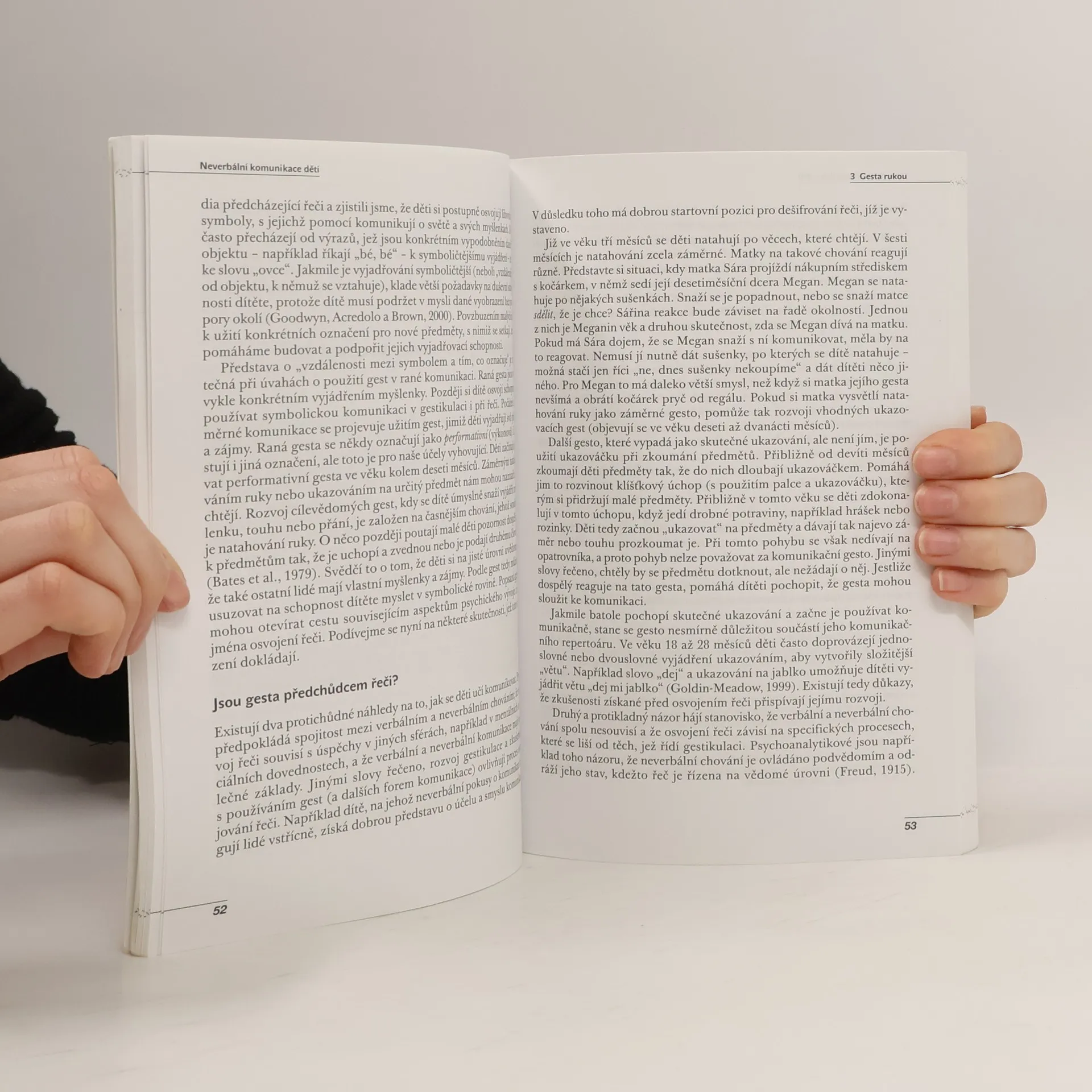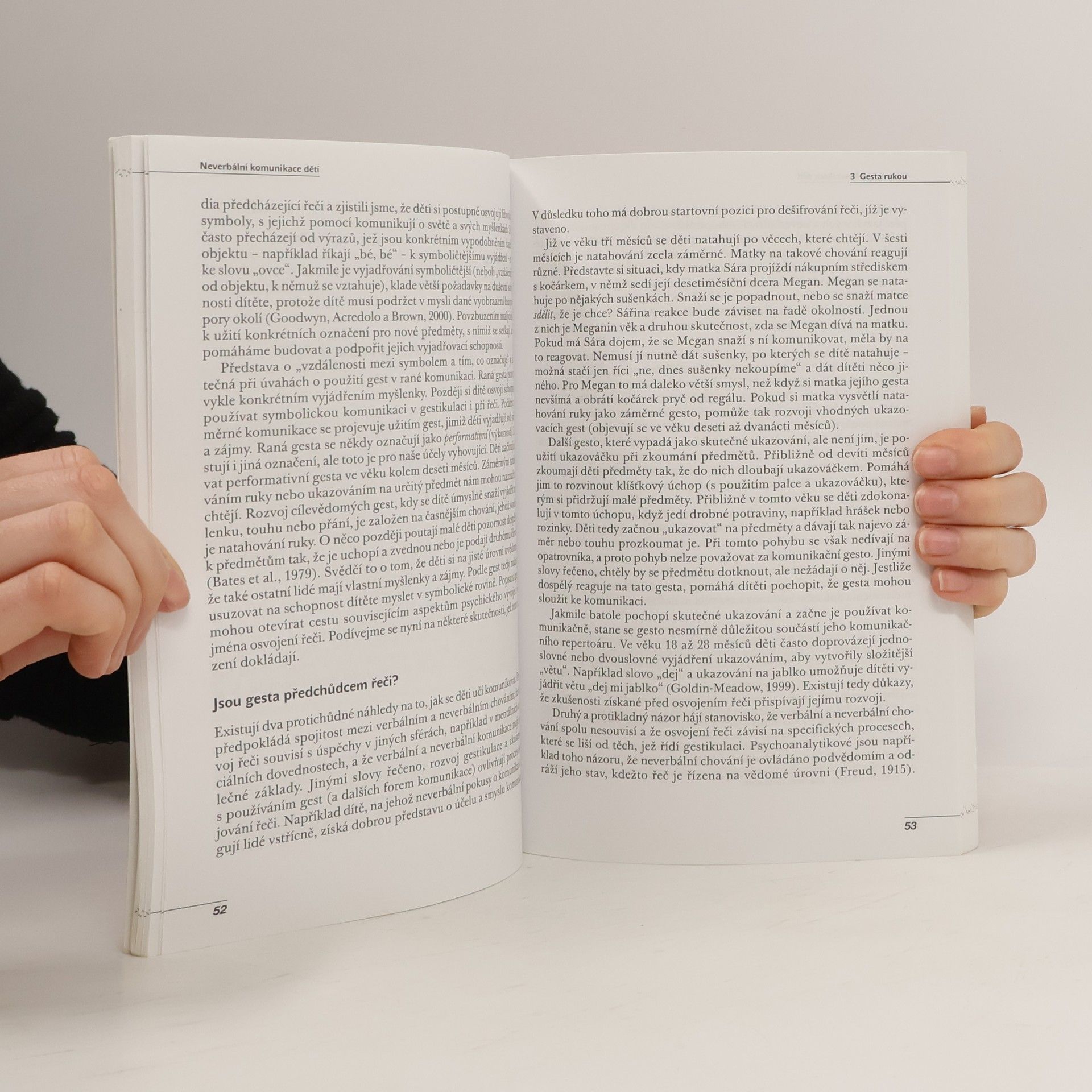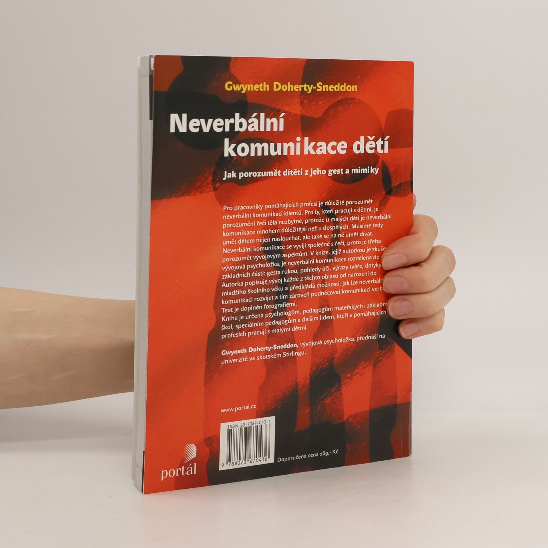 Pro pracovníky pomáhajících profesí je důležité porozumět neverbální komunikaci klientů. Pro ty, kteří pracují s dětmi, je porozumění řeči těla nezbytné, protože u malých dětí je neverbální komunikace mnohem důležitější než u dospělých. Musíme tedy umět dětem nejen naslouchat, ale také se na ně umět dívat. Neverbální komunikace se vyvíjí společně s řečí, proto je třeba porozumět vývojovým aspektům. V knize, jejíž autorkou je zkušená vývojová psycholožka, je neverbální komunikace rozdělena do čtyř základních částí: gesta rukou, pohledy očí, výrazy tváře, dotyky. Autorka popisuje vývoj každé z těchto oblastí od narození do mladšího školního věku a předkládá možnosti, jak lze neverbální komunikaci rozvíjet a tím zároveň podněcovat komunikaci verbální. Text je doplněn fotografiemi. Kniha je určena psychologům, pedagogům mateřských i základních škol, speciálním pedagogům a dalším lidem, kteří v pomáhajících profesích pracují s malými dětmi.