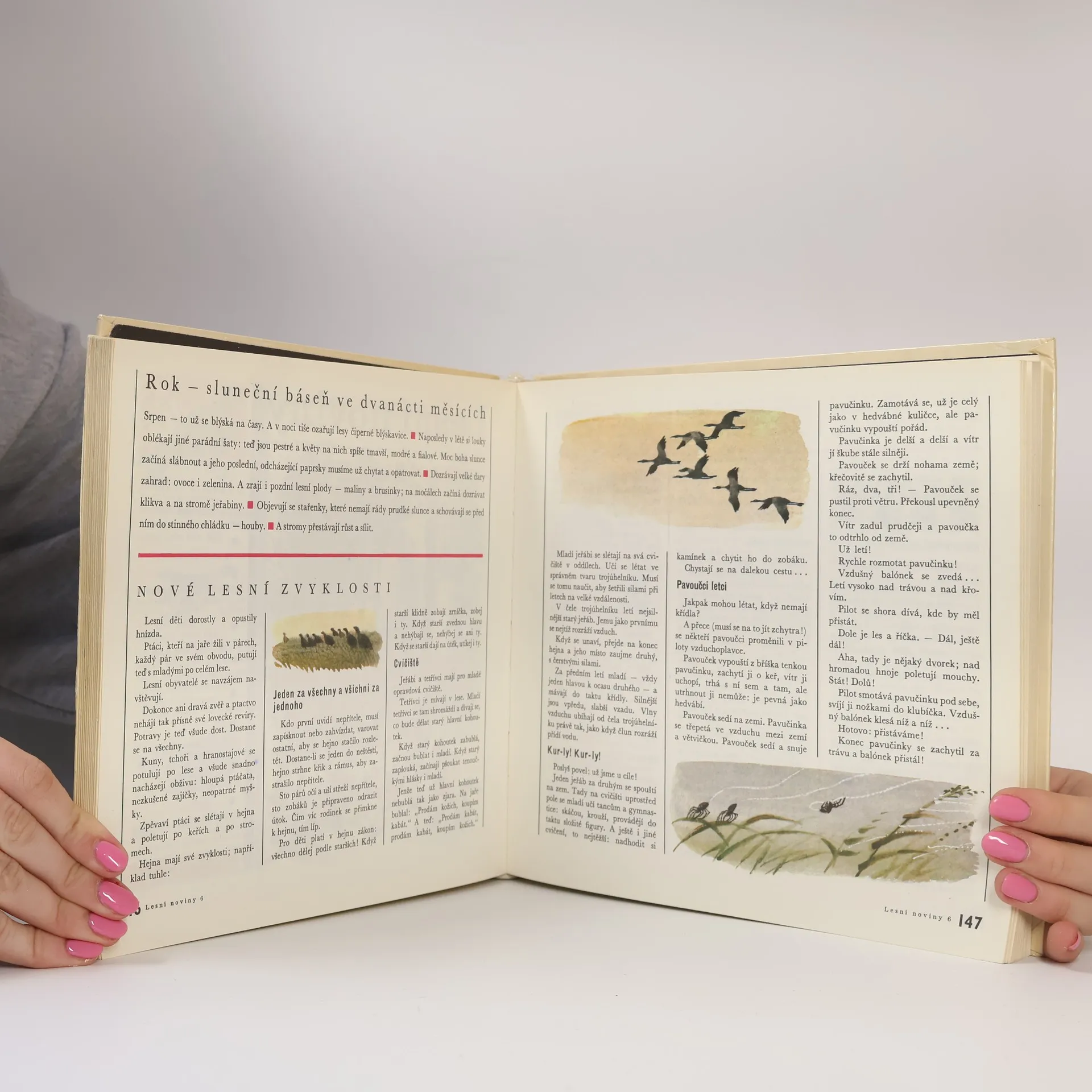 Kniha představuje jakýsi kalendář lesní přírody od jara do zimy, mající formu dvanácti čísel novin, vytvářených různými dopisovateli - dětmi, lovci, vědci, hajnými - a doprovázených vtipnými rubrikami. 2., rozšířené vydání. 26-002-80