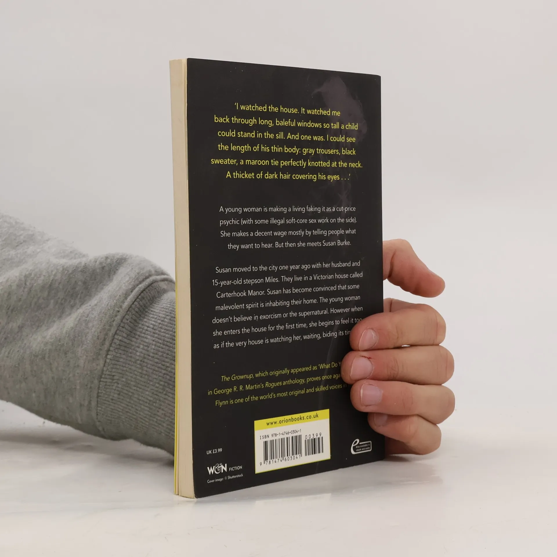 A young woman is making a living faking it as a cut-price psychic (with some illegal soft-core sex work on the side). She makes a decent wage mostly by telling people what they want to hear. But then she meets Susan Burke. Susan moved to the city one year ago with her husband and 15-year-old stepson Miles. They live in a Victorian house called Carterhook Manor. Susan has become convinced that some malevolent spirit is inhabiting their home. The young woman doesn't believe in exorcism or the supernatural. However when she enters the house for the first time, she begins to feel it too, as if the very house is watching her, waiting, biding its time . . . The Grownup, which originally appeared as 'What Do You Do?' in George R. R. Martin's Rogues anthology, proves once again that Gillian Flynn is one of the world's most original and skilled voices in fiction.
