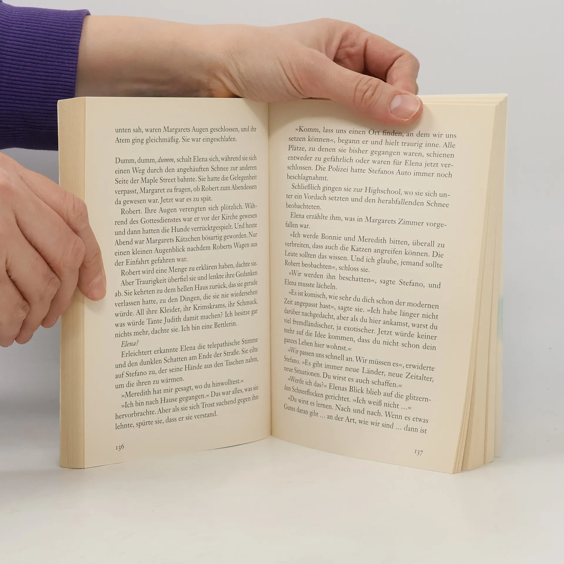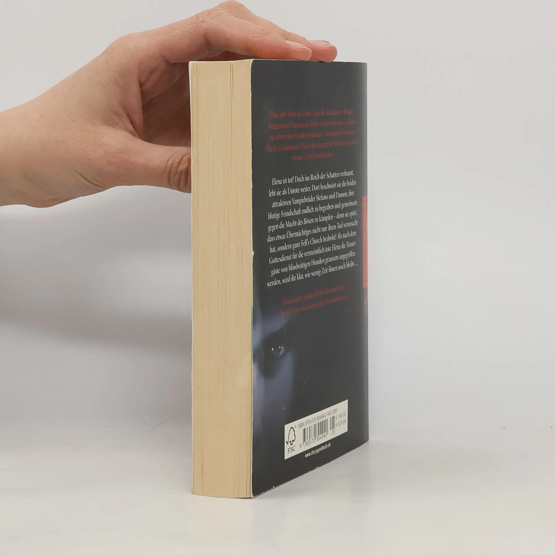 Der 3. Band der Vampirreihe "Tagebuch eines Vampirs" (Band 1 BA 2/09, weitere Bände in dieser Nr.) liest sich beihnahe wie ein Krimi, denn Elena und ihre Freunde versuchen herauszufinden, wer "das Böse" sein könnte, das Elena getötet hat. Sie haben mehrere Verdächtige, so z.B. den kumpelhaften Geschichtslehrer, der sich übermäßig für die unheilvollen Vorkommnisse der letzten Wochen zu interessieren scheint. Schließlich stellt er sich jedoch als harmloser wissenschaftlicher Forscher der Parapsychologie heraus. Auch die anderen Verdächtigungen erweisen sich als falsch und erst am Ende des Buches erfahren wir die Wahrheit: Hinter dem "Bösen" steckt Caterina, die ehemalige Geliebte von Stefano und Damon, der sie ihr Vampirdasein zu verdanken haben. Um sie zu bekämpfen, begraben die beiden Vampirbrüder sogar ihre ewige Feindschaft und Elena opfert sich heldenhaft, um die Bewohner der Stadt zu retten und versinkt in der Schattenwelt. Dramatisch, romantisch, einfach gestrickt - zur Fortsetzung empfohlen. . - Im 3. Band der Vampirreihe versuchen Elena und ihre Freunde herauszufinden, wer hinter dem "Bösen" steckt und stoßen schließlich auf Caterina, die ehemalige Geliebte von Stefano und Damon. Ab 14.