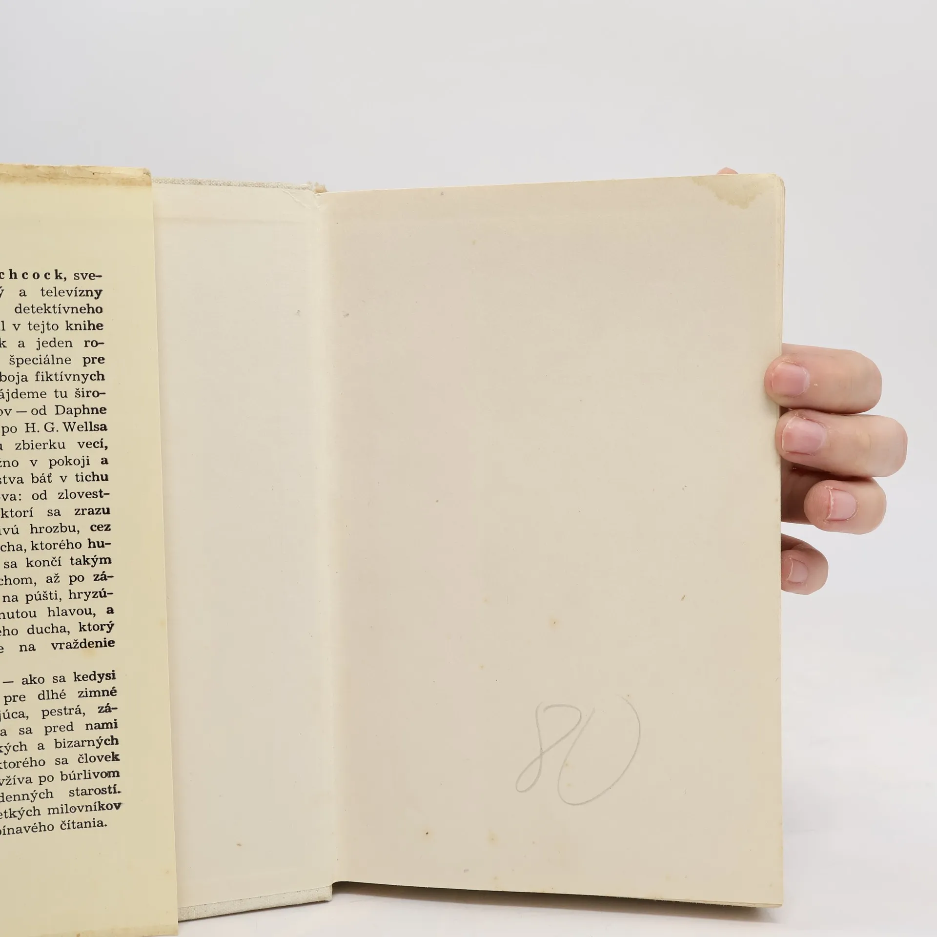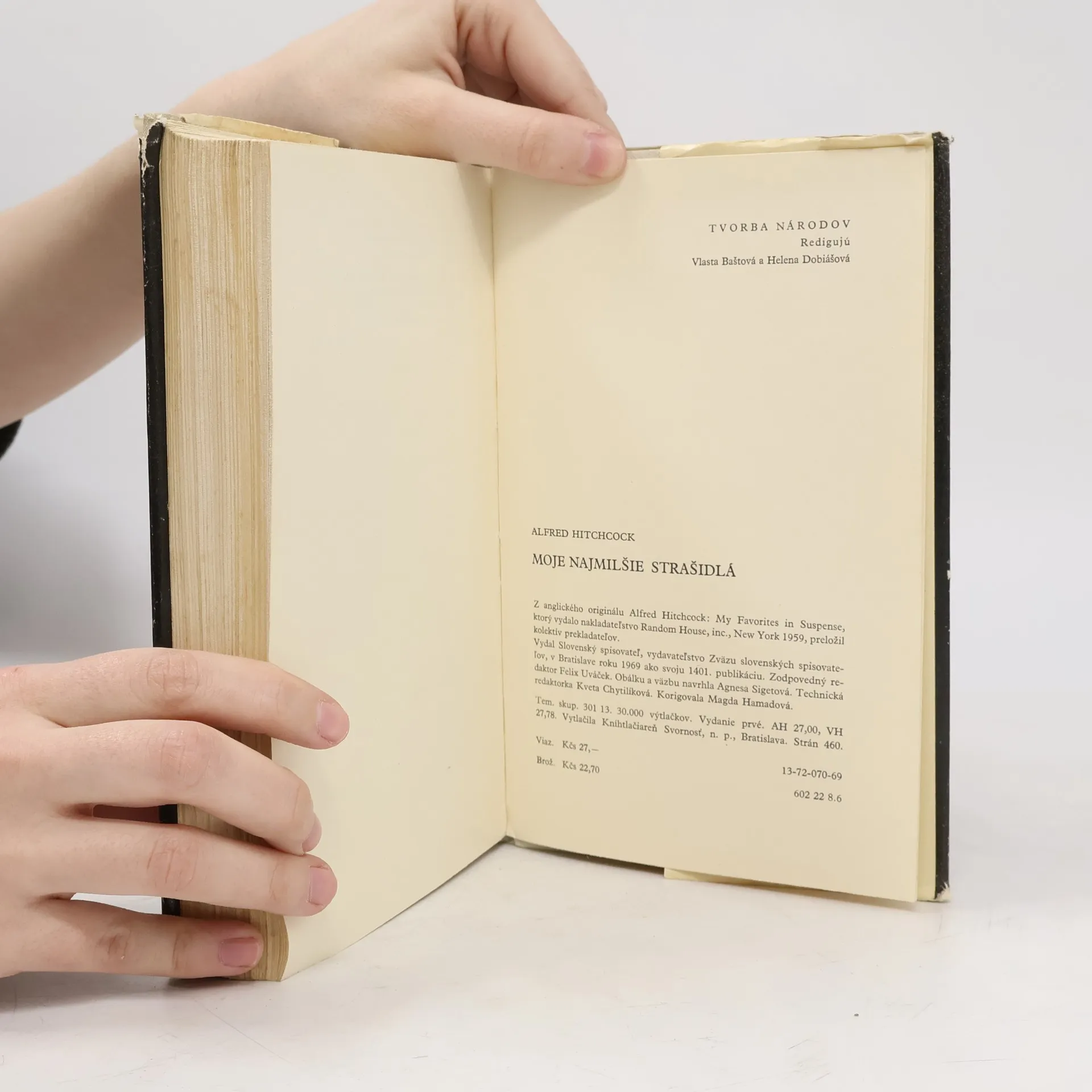 Antológia obsahuje poviedky rôznych autorov. Hororové poviedky vybral Alfred Hitchcock. Známy majster horroru v tejto knihe zhromaždil 20 poviedok a jednu novelu pre tých, ktorí sa radi boja fiktívnych príšer a hrôz... Poviedky: Vtáci-Daphne Du Maurier, Adamsov problém-Donald Honig, Ostré zuby-Anthony Boucher, Nepriateľ-Charlotte Armstrong, Neskúsený duch-H.G. Wells, Na smrť odsúdený-Thomas Walsh, Jarná horúčka-Dorothy Salisbury Davis, Debna na predsunutej stráži 1-Matthew Gant, Moja nepekná dáma-Guy Cullingford, Nové vraždy za starú-Carter Dickson, Zdesenie-C.B. Gilford, Súboj-Joan Vatsek, O štvrtej-Price Day, Priveľa náhod-Paul Eiden, O stratených ľuďoch-Jack Finney, Ostrov strachu-William Sambrot, Ako sa zbaviť Georgea-Robert Arthur, Poklad-F. Tennyson Jesse, Postava z detektívky-Wilbur Daniel Steele, Príjemný dotyk-Mann Rubin, Prázdna stena-Elisabeth Sanxay Holding. 13-72-070