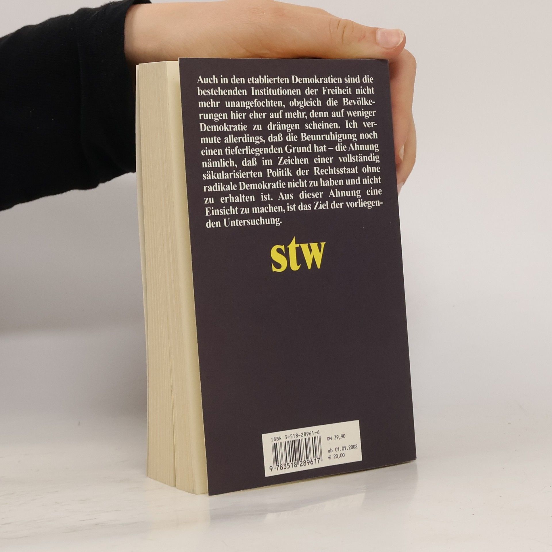 Auch in den etablierten Demokratien sind die bestehenden Institutionen der Freiheit nicht mehr unangefochten, obgleich die Bevölkerungen hier eher auf mehr, denn auf weniger Demokratie zu drängen scheinen. Ich vermute allerdings, daß die Beunruhigung noch einen tieferliegenden Grund hat - die Ahnung nämlich, daß im Zeichen einer vollständig säkularisierten Politik der Rechtsstaat ohne radikale Demokratie nicht zu haben und nicht zu erhalten ist. Aus dieser Ahnung eine Einsicht zu machen, ist das Ziel der vorliegenden Untersuchung.