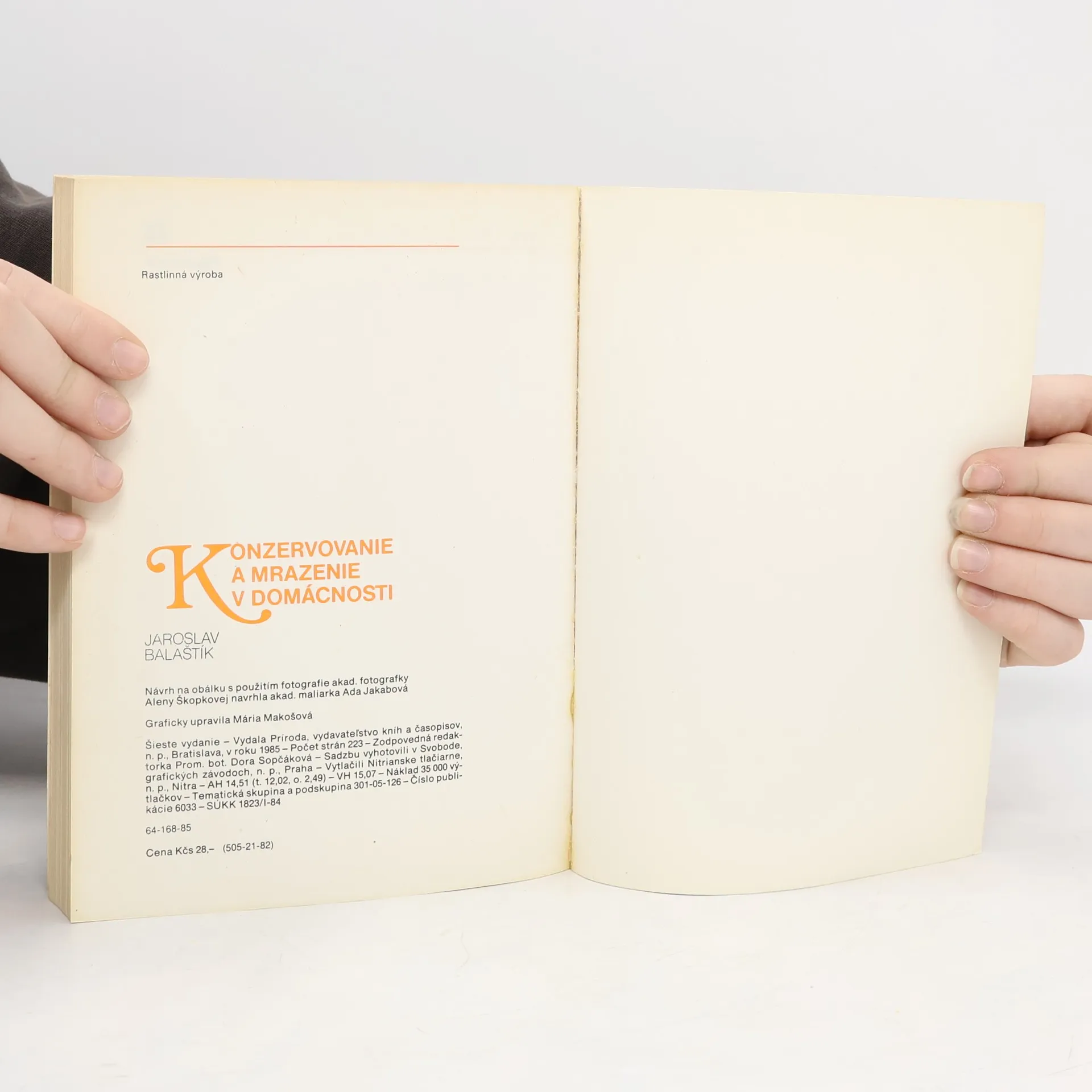 Autora knihy, Ing. Jaroslava Balaštíka, jedného z našich najlepších konzervárenských odborníkov, čitateľská verejnosť dobre pozná. Jeho knihy o konzervovaní v domácnosti iste nechýbajú ani v jednej domácnosti a sú praktickou a dobrou pomôckou. Prístupnou formou obohacuje literatúru z oblasti konzervovania a uchovávania potravín. Z obsahu : sterilizácia konzerv, sterilizovaná a nakladaná zelenina, sterilizované huby, marmelády, džemy, rôsoly, lekváre, ovocné šťavy, ovocné a zeleninové džúsy, sirupy, vína, sušené ovocie, zelenina, huby a vňate, zelenina v soli, kvasená a marinovaná kapusta, konzervovanie mäsa a sladkovodných rýb, mrazenie v domácnosti (zelenine, ovocie, mäso, huby).