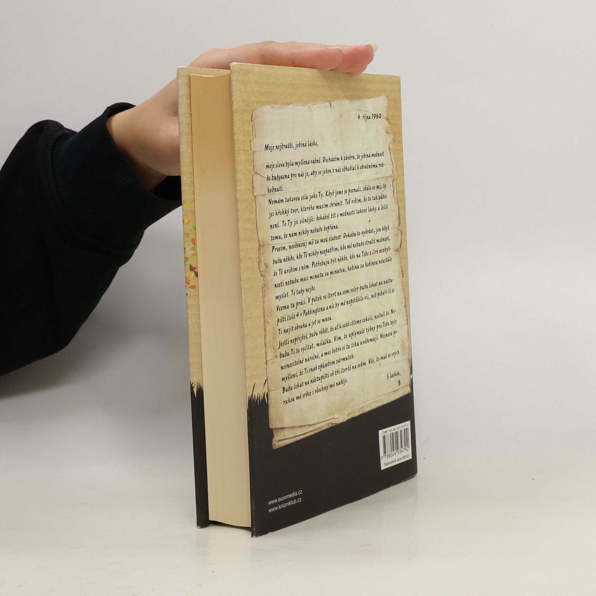 Mimořádně silný příběh vášně, nevěry a ztráty z pera respektované britské autorky Jojo Moyesové, který získal v roce 2011 prestižní ocenění The Romantic Novel of the Year Award. Novinářka Elllie při pátrání v archivu narazí na půlstoletí starý dopis, v němž neznámý muž žádá svoji milenku, aby opustila manžela. Elllie příběh, skrývající se za dopisem, okamžitě zaujme – i ona sama má poměr se ženatým mužem. Rok 1960. Jennifer Stirlingová leží v nemocnici po vážné autonehodě a na nic si nepamatuje – na manžela, na své kamarády, ani na to, jaká byla ona sama. Když se však vrátí z nemocnice domů a najde tajný dopis, pomalu se začíná rozpomínat na milence, kvůli kterému byla kdysi ochotná riskovat úplně všechno.