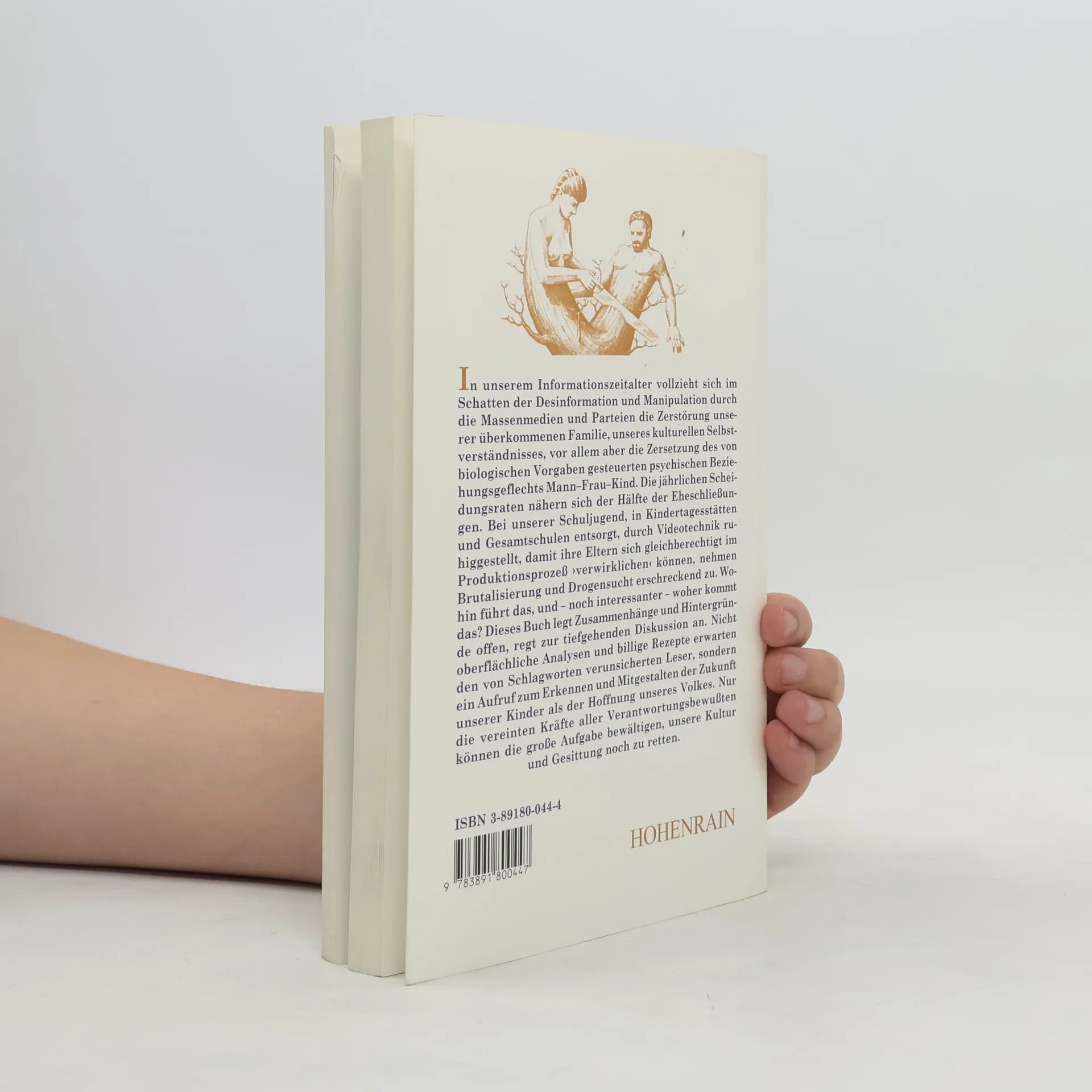 In unserem Informationszeitalter vollzieht sich im Schatten der Desinformation und Manipulation durch die Massenmedien und Parteien die Zerstörung unserer überkommenen Familie, unseres kulturellen Selbstverständnisses, vor allem aber die Zersetzung des von biologischen Vorgabengesteuerten psychologischen Beziehungsgeflechts Mann–Frau–Kind. Die jährlichen Scheidungsraten nähern sich der Hälfte der Eheschließungen. Bei unserer Schuljugend, in Kindertagesstätten und Gesamtschulen entsorgt, durch Videotechnik ruhiggestellt, damit ihre Eltern sich gleichberechtigt im Produktionsprozeß ›verwirklichen‹ können, nehmen Brutalisierung und Drogensucht erschreckend zu. Wohin führt das, und – noch interessanter – woher kommt das? Dieses Buch legt Zusammenhänge und Hintergründe offen, regt zur tiefgehenden Diskussion an. Nicht oberflächliche Analysen und billige Rezepte erwarten den von Schlagworten verunsicherten Leser, sondern ein Aufruf zum Erkennen und Mitgestalten der Zukunft unserer Kinder als der Hoffnung unseres Volkes. Nur die vereinten Kräfte aller Verantwortungsbewussten können die große Aufgabe bewältigen, unsere Kultur und Gesittung noch zu retten.