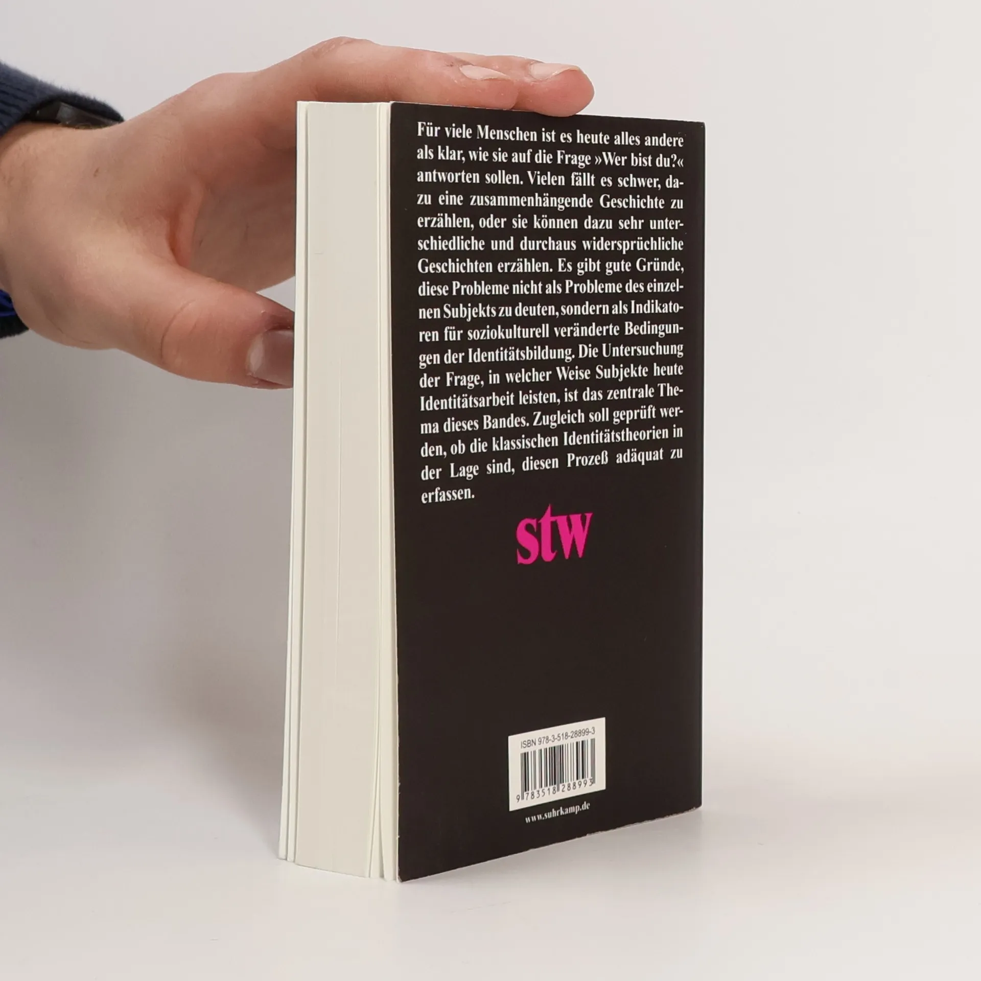 „Im vorliegenden Band wird ein Überblick über die empirische Identitätsforschung gegeben, die sich im Anschluß an Erik H. Eriksons großen Entwurf (Identität und Lebenszyklus, stw 16, und Der vollständige Lebenszyklus, stw 737) entwickelt hat. Darüber hinaus werden wichtige Ausschnitte aus dem Gesamtpanorama aktueller Identitätstheorien präsentiert: der philosophische Identitätsdiskurs zwischen Kommunitarismus und Postmoderne; die interaktionistisch weitergeführte Position Eriksons; der psychoanalytische Zugang zur Identität auf der Basis der psychoanalytischen Objektbeziehungstheorie, der sich auf die empirische Säuglingsforschung stützt; eine Ressourcentheorie der Identitätsarbeit im Anschluß an Bourdieu.“